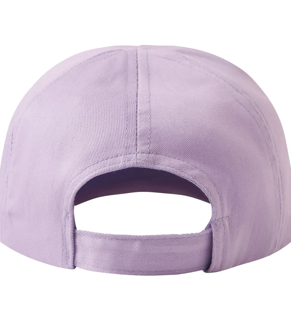 Lækker Name It kasket i en lys lilla med et farverigt print af Gurli Gris, en regnbue og blomster på fronten samt glimmer på skyggen. Kasketten tilføjer sjov til ethvert outfit.