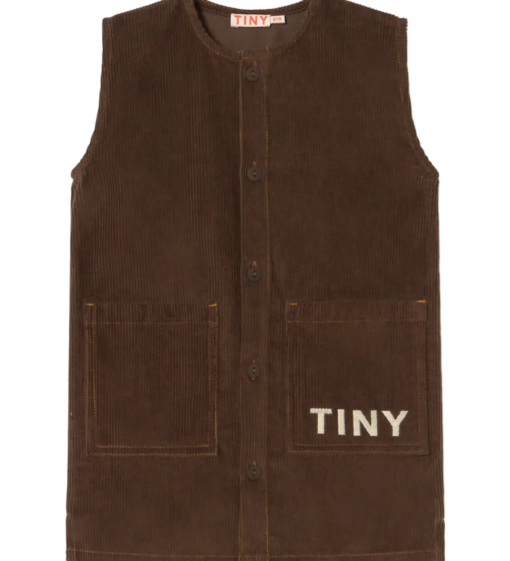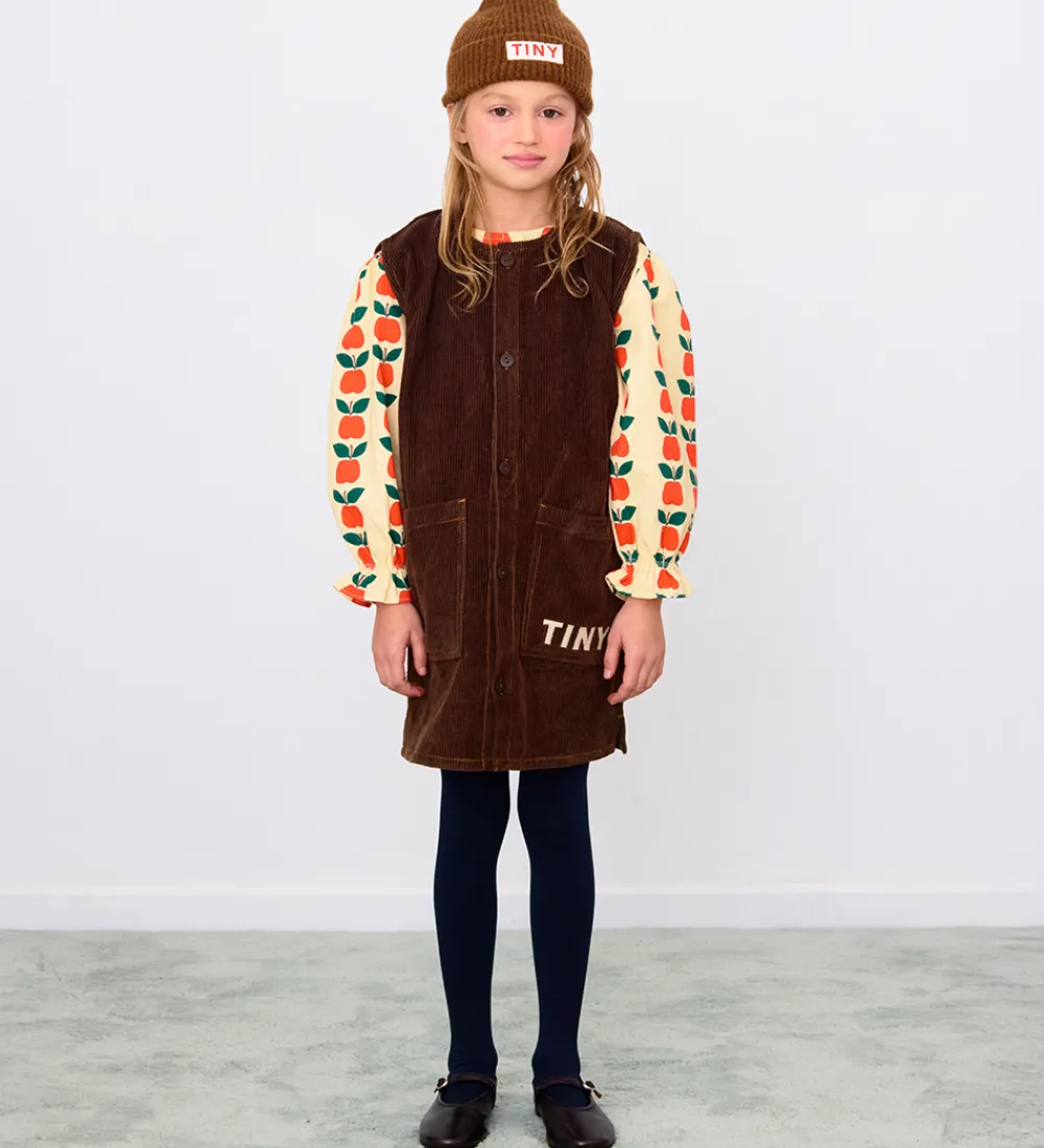 Lækker Tiny Cottons kjole i ensfarvet mørkebrunt fløjl i en fastvævet kvalitet.