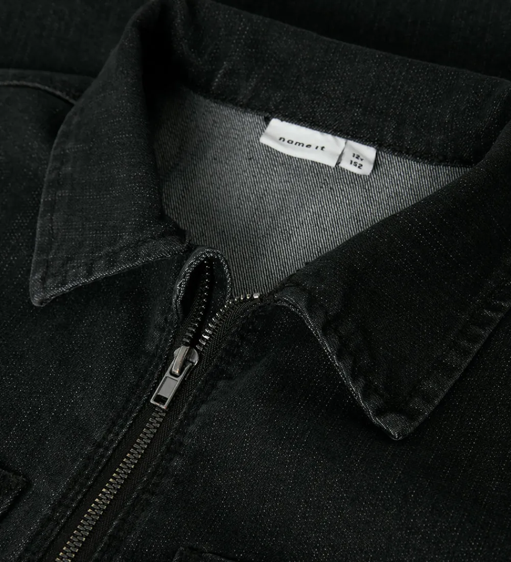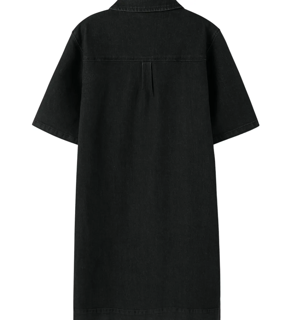 Stilfuld Name It kjole i koksgrå denim. Kjolen har korte ærmer og to bryslommer. Den har en praktisk lynlåslukning foran, der giver et moderne udtryk. Name It kjolen er designet med en klassisk krave, der komplementerer det enkle, men elegante look.
