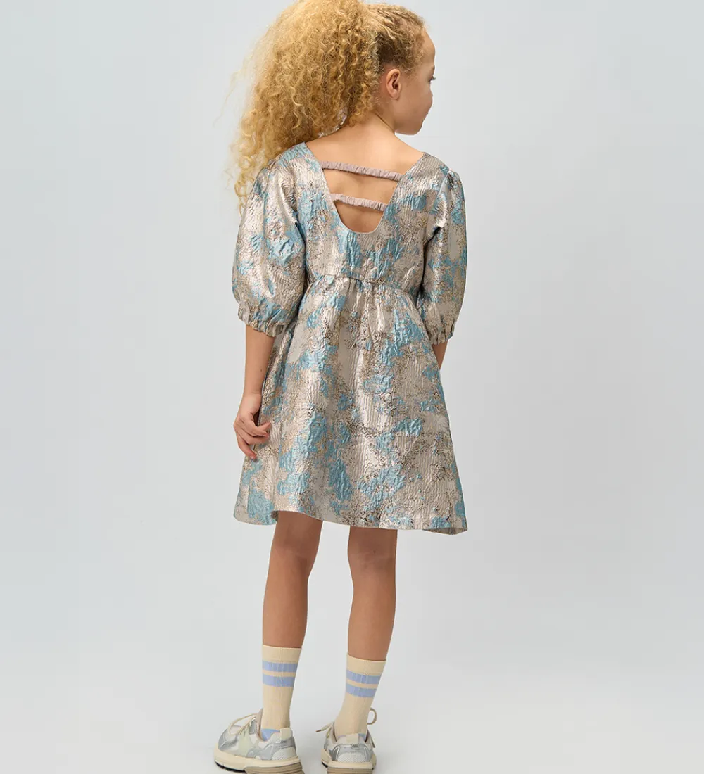 Elegant kjole fra The New i en smuk kombination af metalliske og lyseblå nuancer.