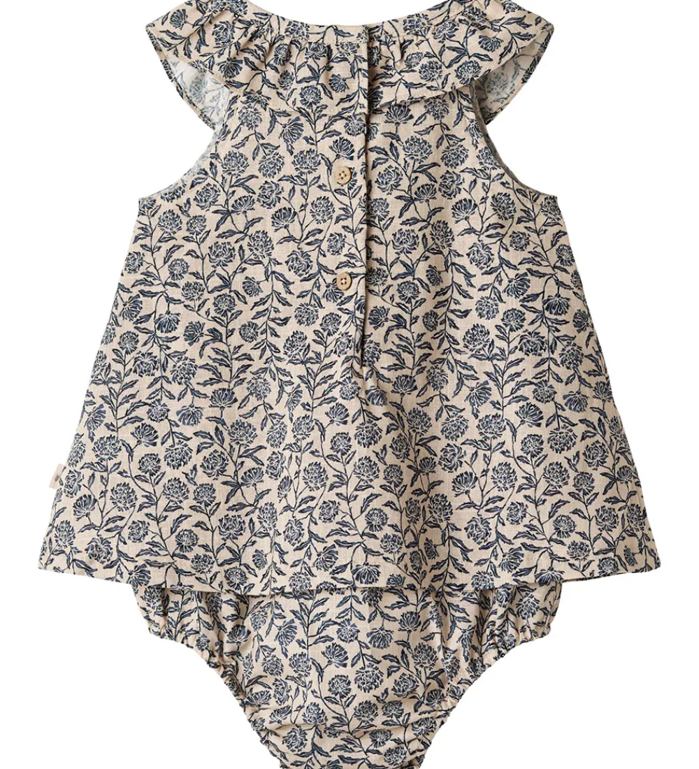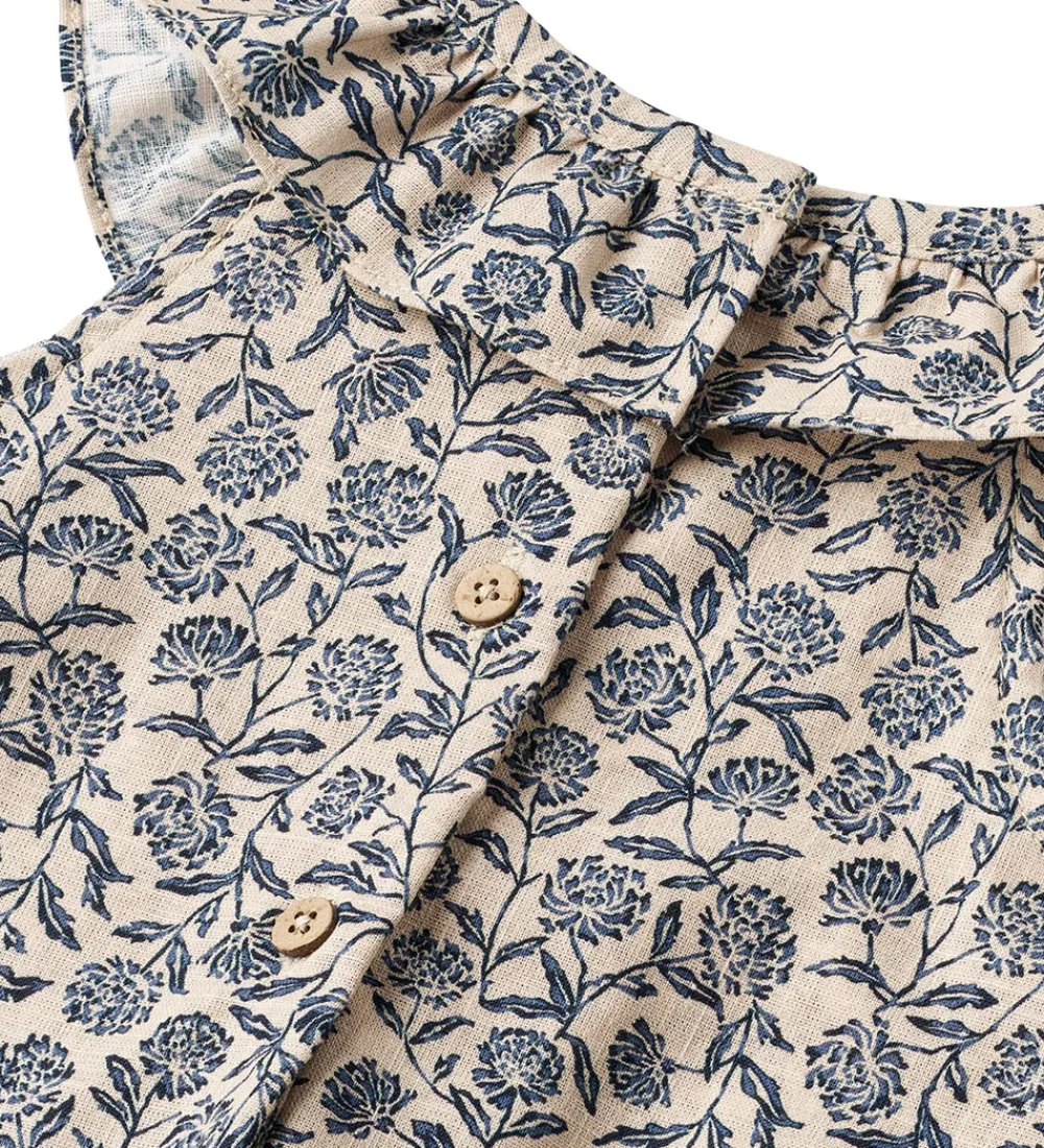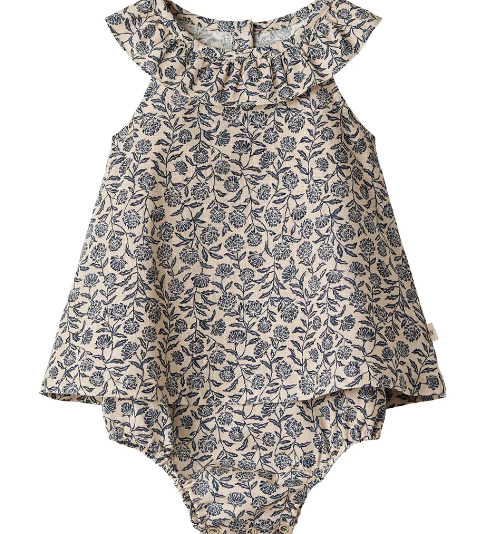 Skøn Wheat kjolebody i beige med et allover print af kornblomster i mørkeblå nuancer.
