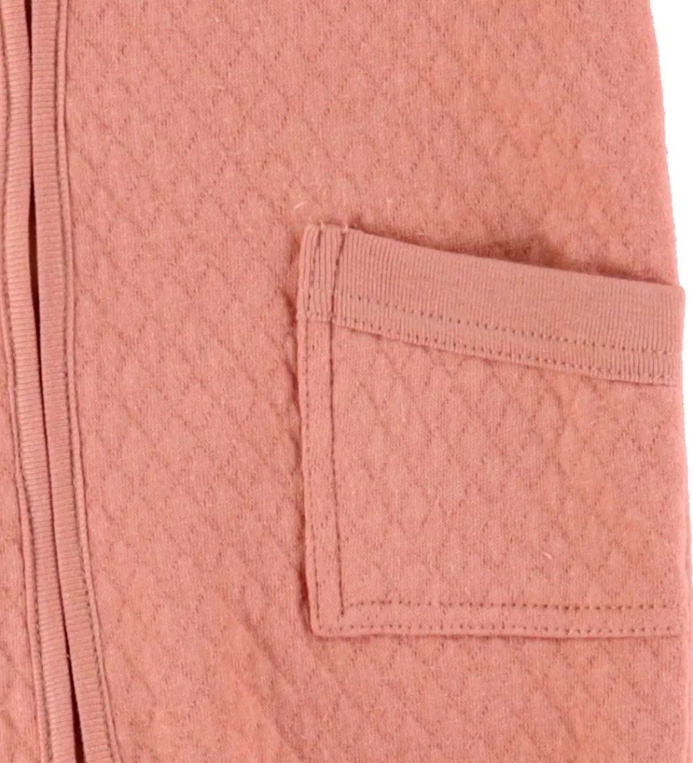 Flot Joha køredragt i en lækker laksefarve med markante åbne lommer på forsiden. Dragten har en smuk quiltet struktur, hvilket giver et elegant og stilrent udtryk.