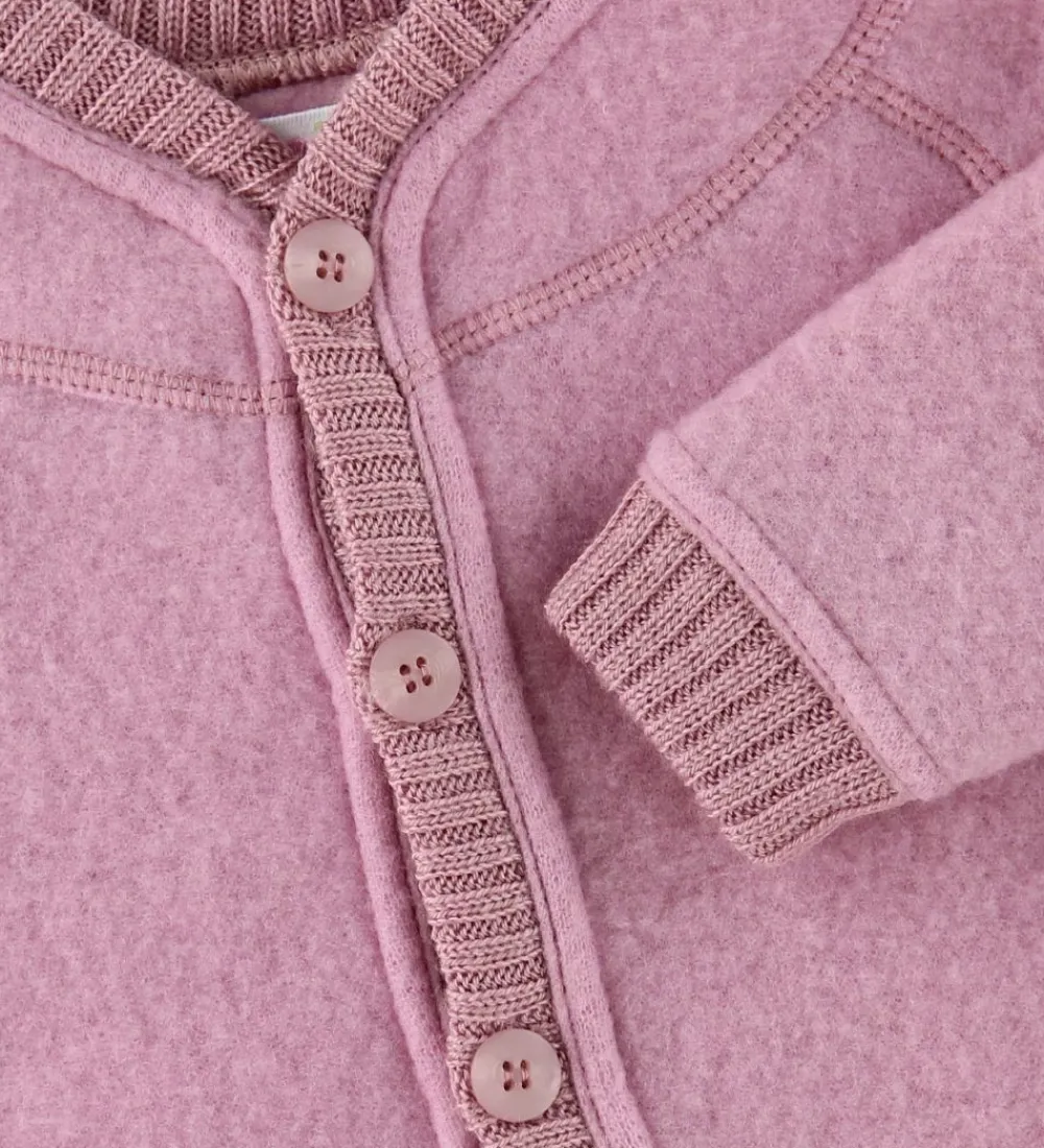 Joha køredragten er lavet af en kraftig, filtet uldkvalitet, der føles rigtig blød og behagelig mod huden. Ulden sørger for, at barnet altid har den helt rigtige temperatur.