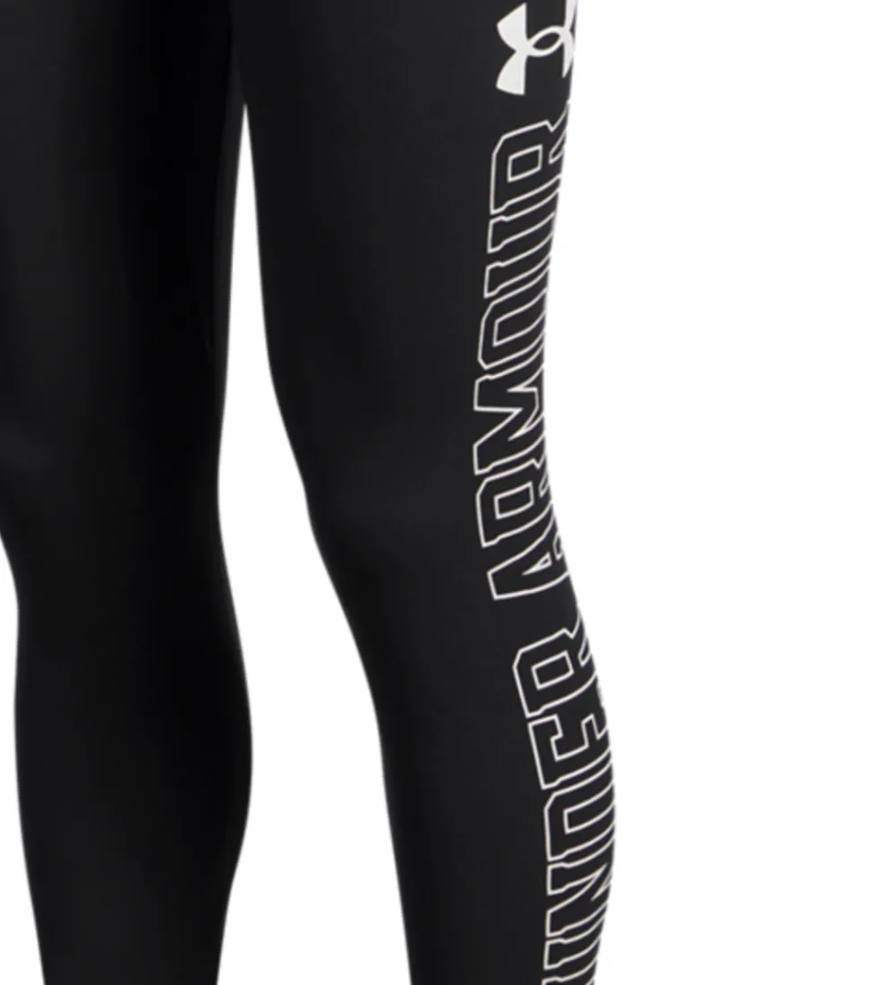 Elegante Under Armour leggings i en klassisk, sort farve med det ikoniske Under Armour logo langs benet. Under Armour leggingsene har en elastisk talje, der sikrer en optimal pasform.