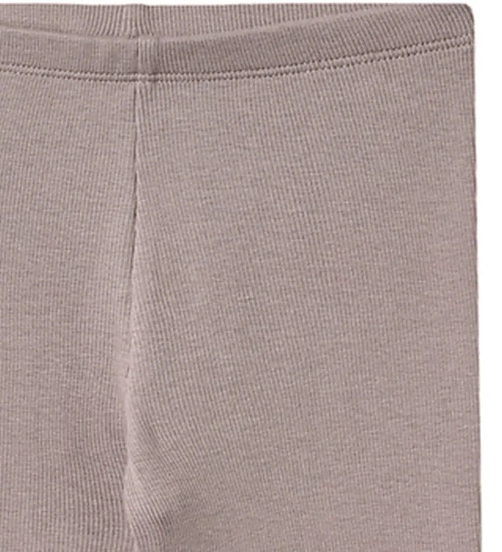 Fine Wheat leggings i en afdæmpet lilla nuance og med en ribbet struktur. Wheat leggingsene har en elastisk talje, der sikrer en god pasform.