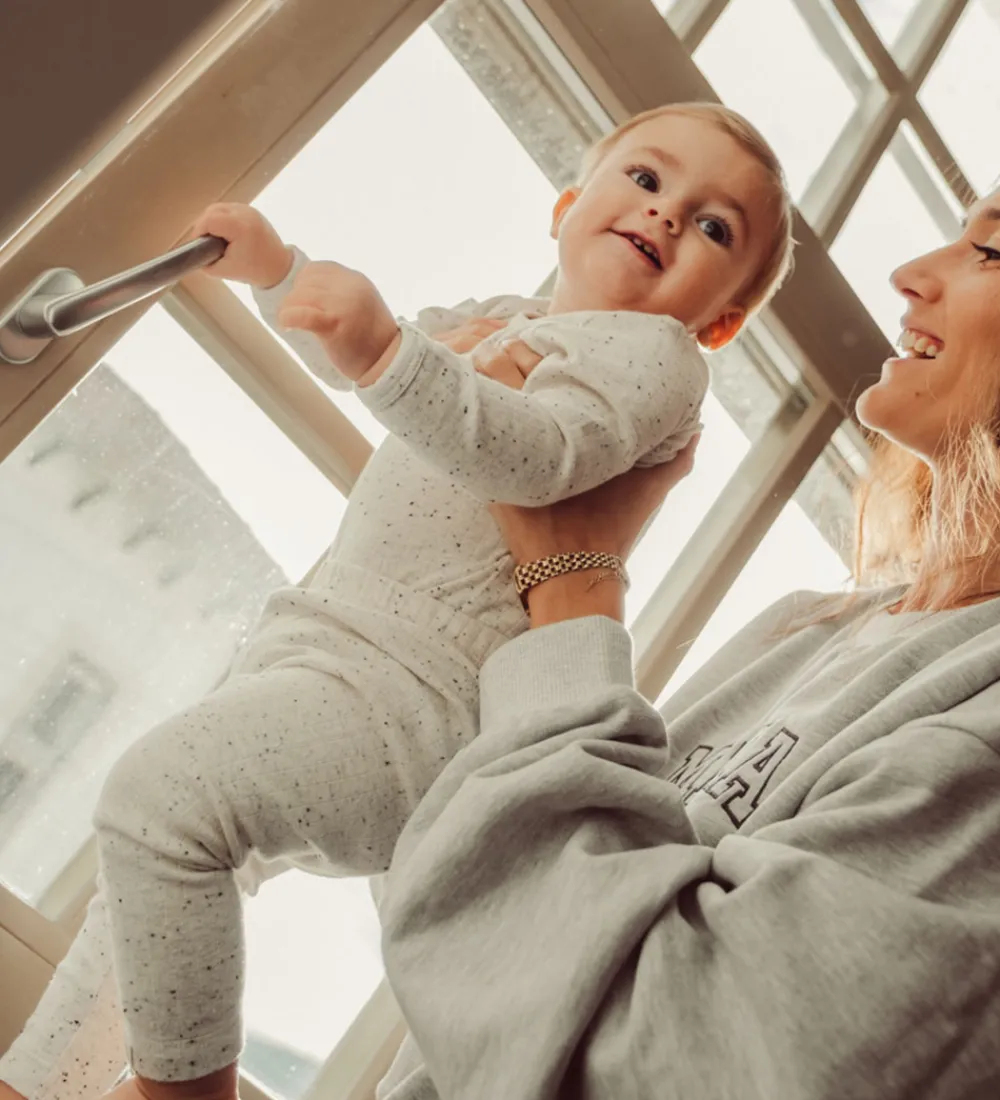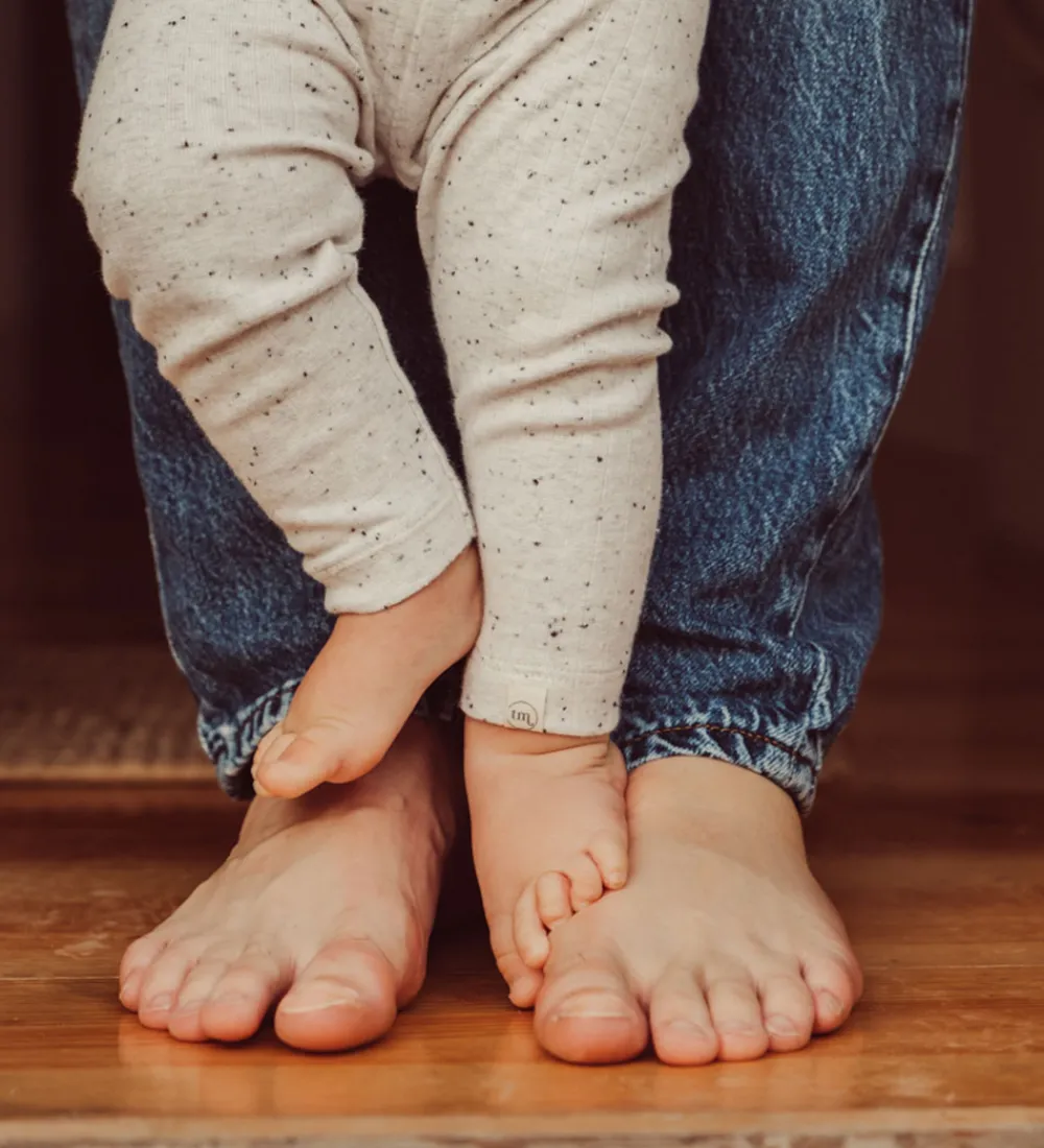 Stilfulde Thats Mine leggings i en meleret, lysebeige nuance med små, spredte prikker. Thats Mine leggingsene har en blød ribstruktur og en elastisk talje for optimal pasform.