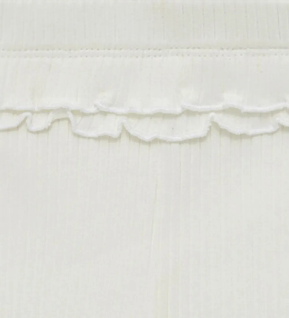 Attraktive Moncler leggings i en klassisk hvid farve med fin ribstruktur. Moncler leggingsene har en elastisk talje med en flot flæsekant samt et lille logo-applikation ved anklen.
