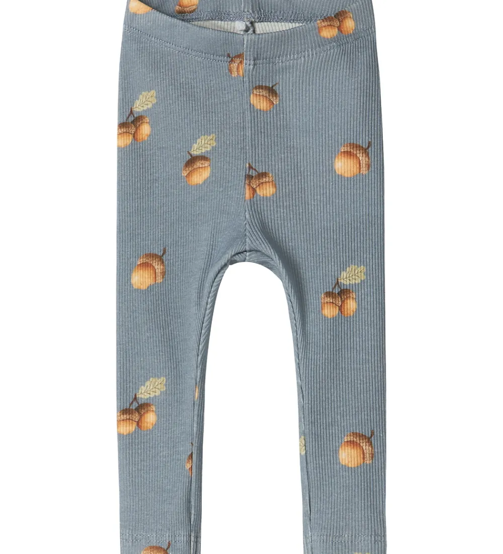 Behagelige Name It leggings i en støvet blå nuance med et sødt agernprint. Name It leggingsene har en elastisk talje, der sikrer en god pasform, og er fremstillet i en ribstruktur.