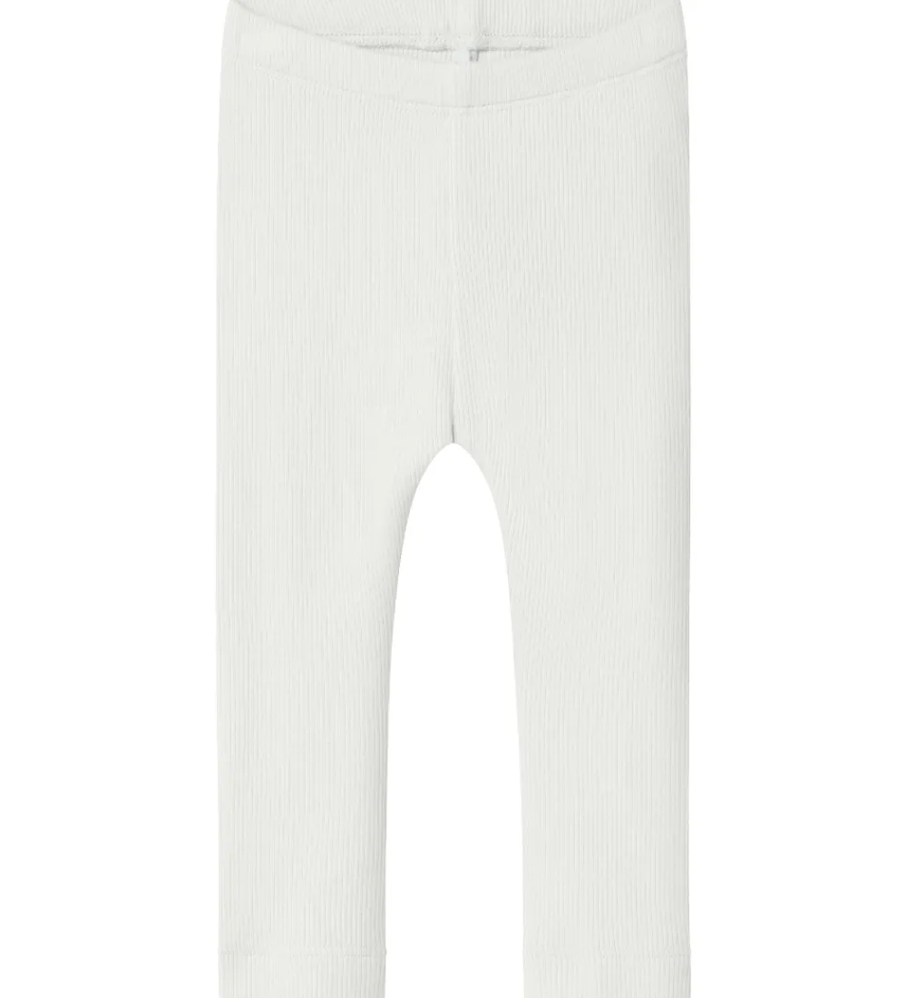 Fine Name It leggings i hvid med ribstruktur. Name It leggingsene har en elastisk talje, der sikrer en god pasform.