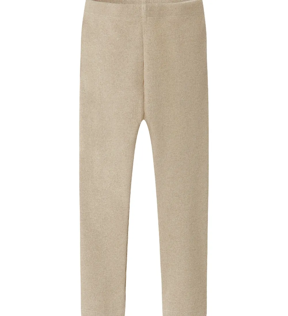 Elegant Name It leggings i en lys beige farve med en diskret ribstruktur og glimmer. Name It leggingsene har en elastisk talje, der sikrer god pasform.
