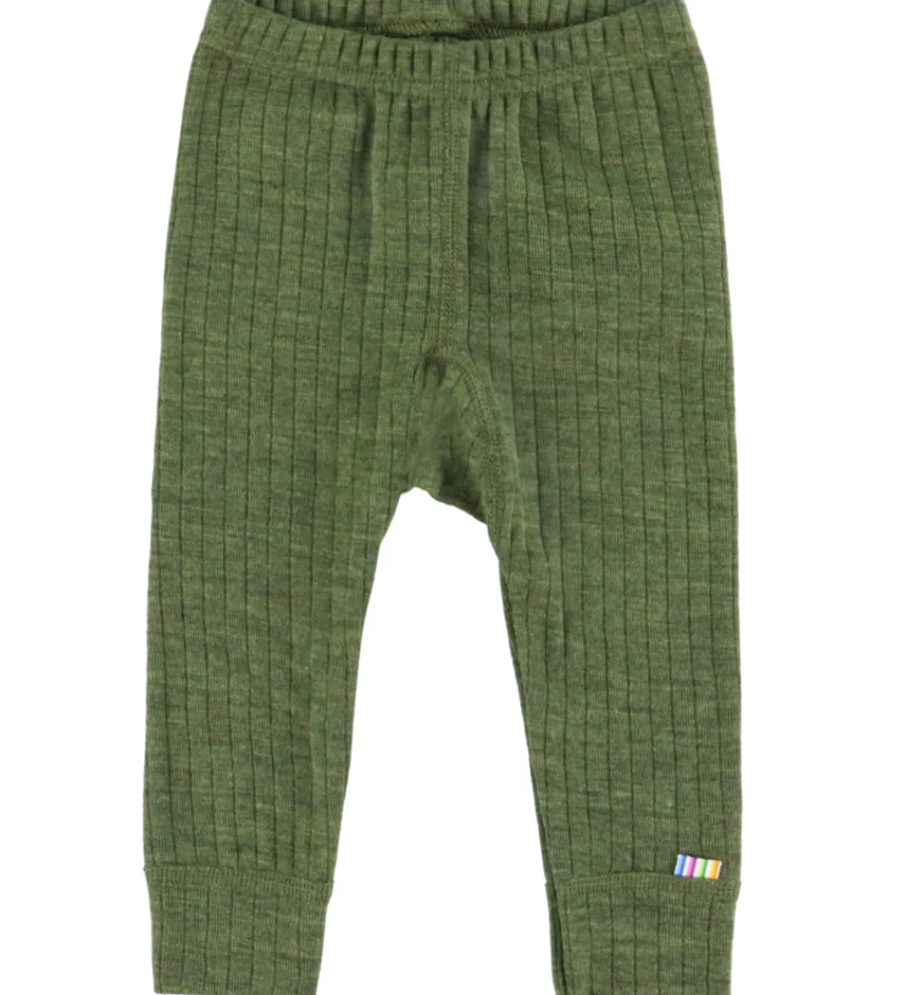Bløde Joha leggings i en flot, olivengrøn farve med ribstruktur. Joha leggingsene har en behagelig elastikkant i taljen og et lille farvet logo nederst. Perfekte til garderoben.
