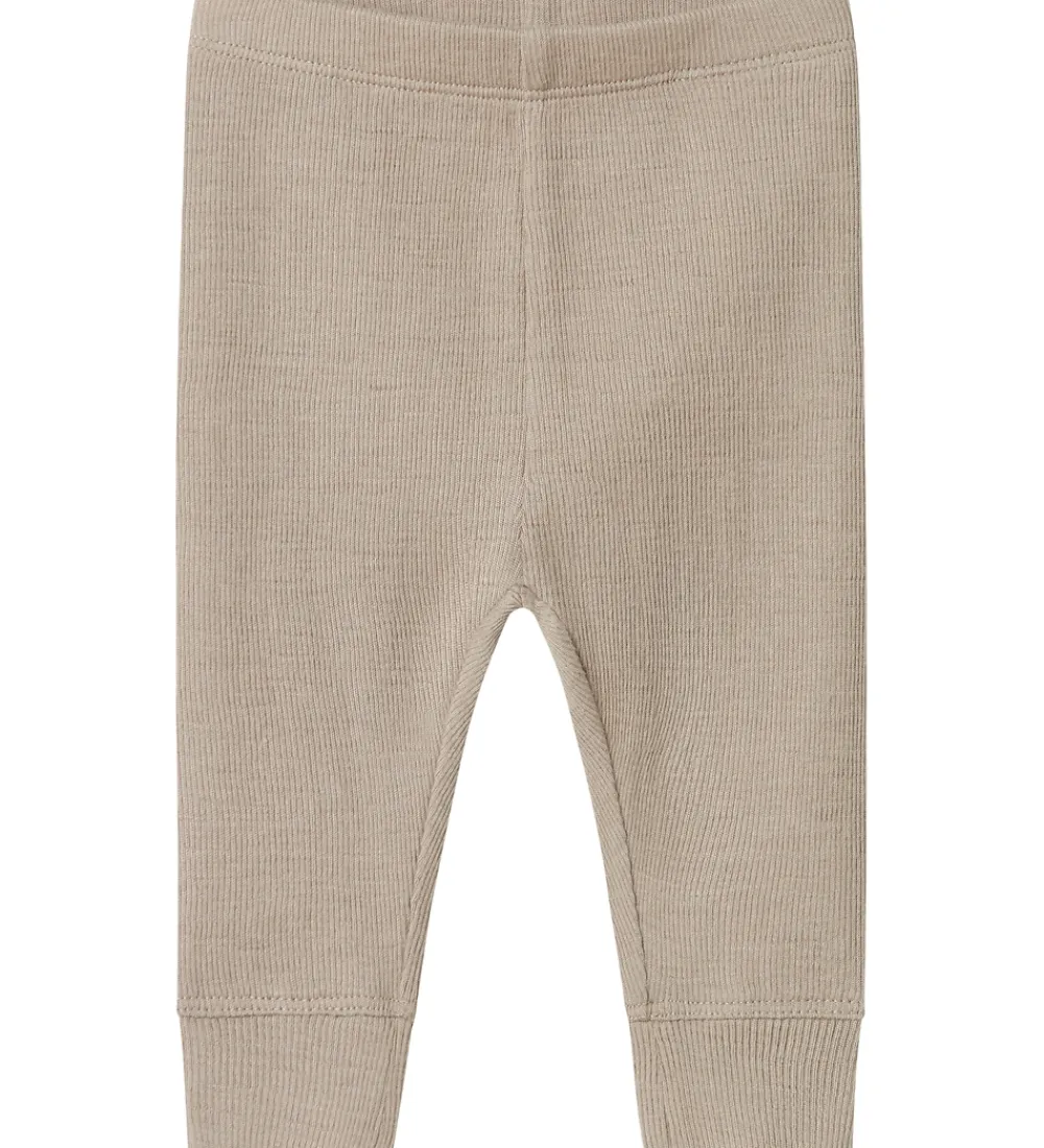 Praktiske Name It leggings i en diskret, beige farve med en tydelig ribstruktur. Name It leggingsene har en elastisk talje, der sikrer en god pasform.