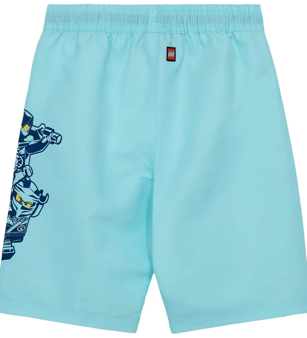 Flotte LEGO® Ninjago badeshorts i turkisblå med et sejt Ninjago-print på siden. Designet har praktiske bindebånd for optimal komfort. LEGO® Wear kvalitet og kreativt look gør disse til en favorit ved vandet.