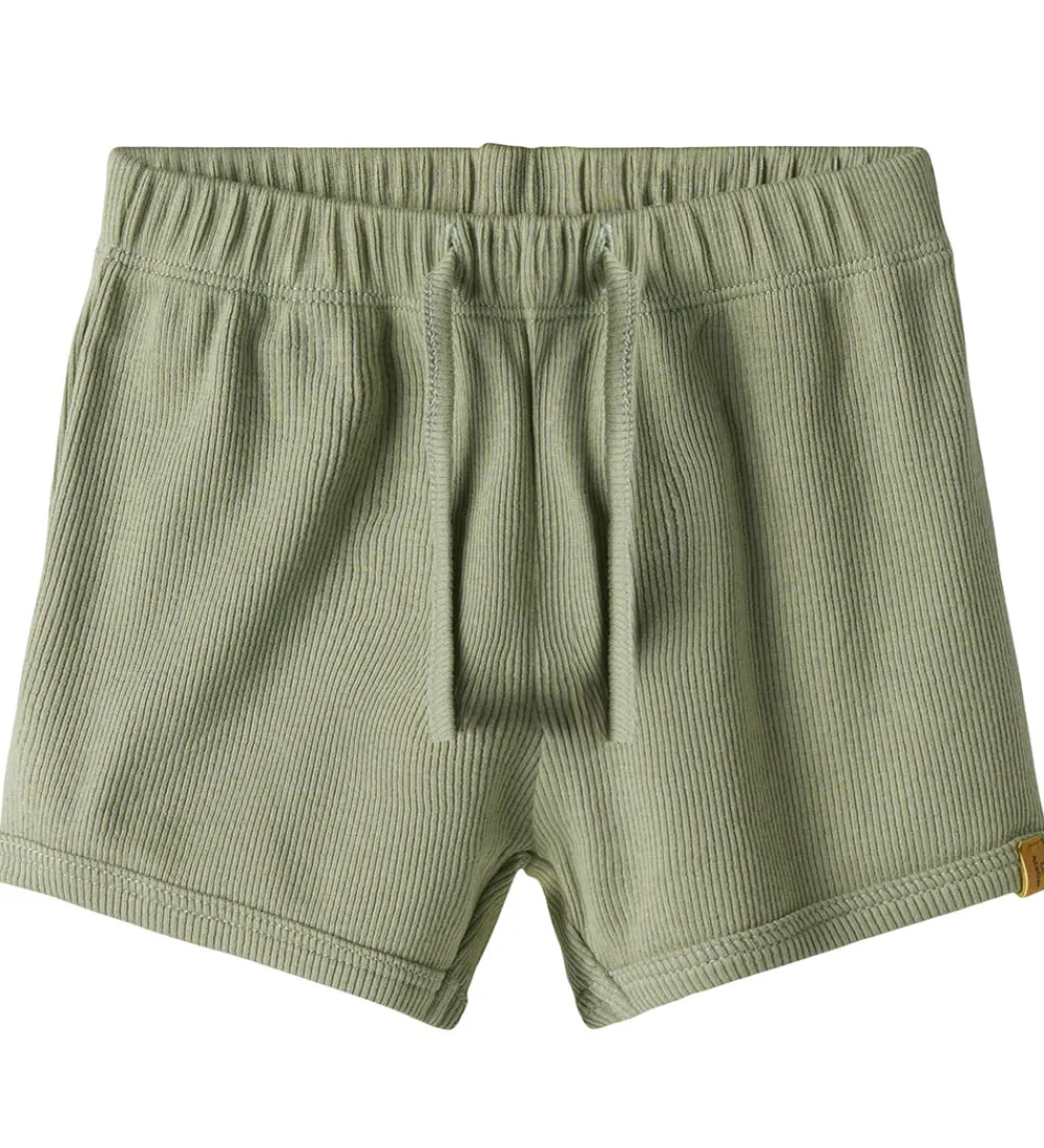 Flotte Lil’ Atelier shorts i en støvet grøn nuance med en lækker ribstruktur, der tilføjer tekstur og strækbarhed.
