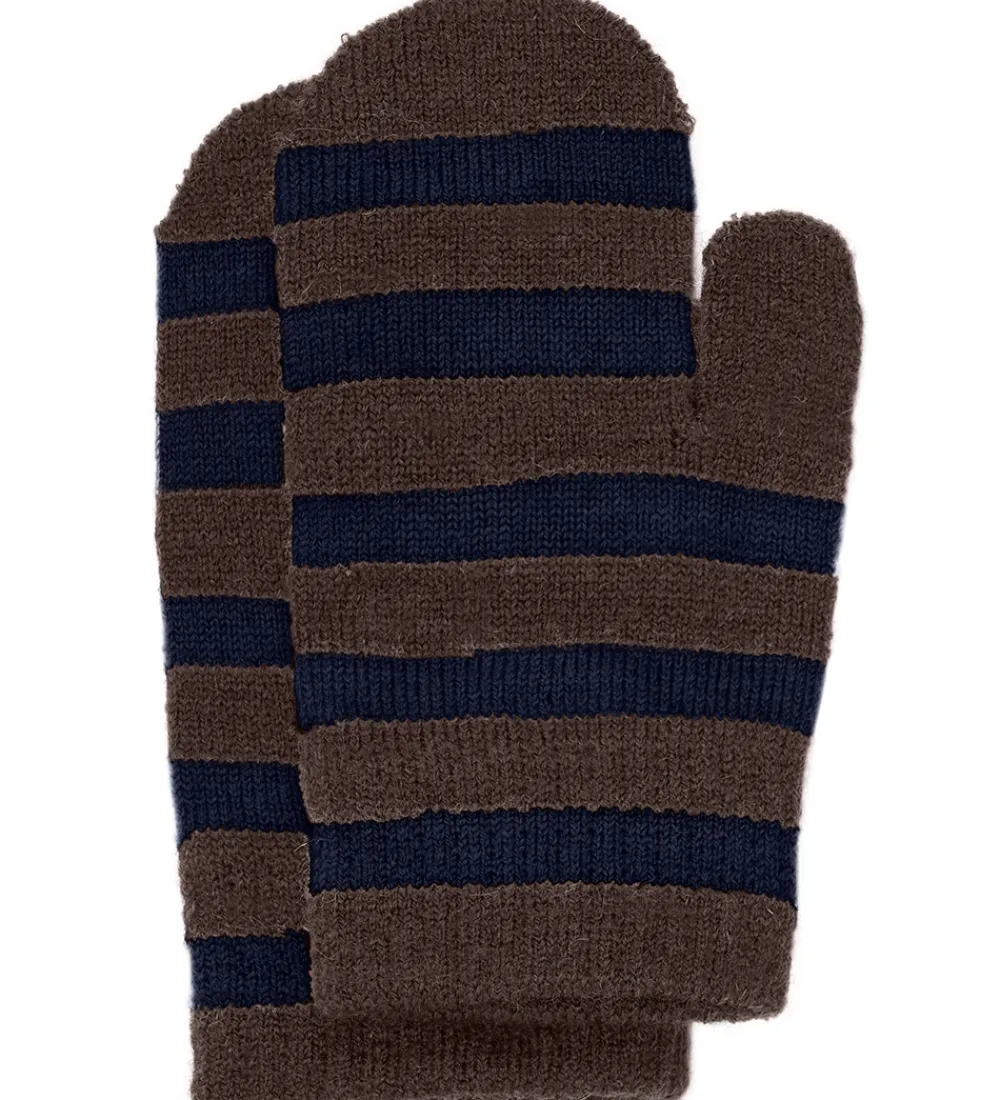 Lufferne har brede, elastiske ribkanter ved håndleddene og er strikket i en blød uldblanding.