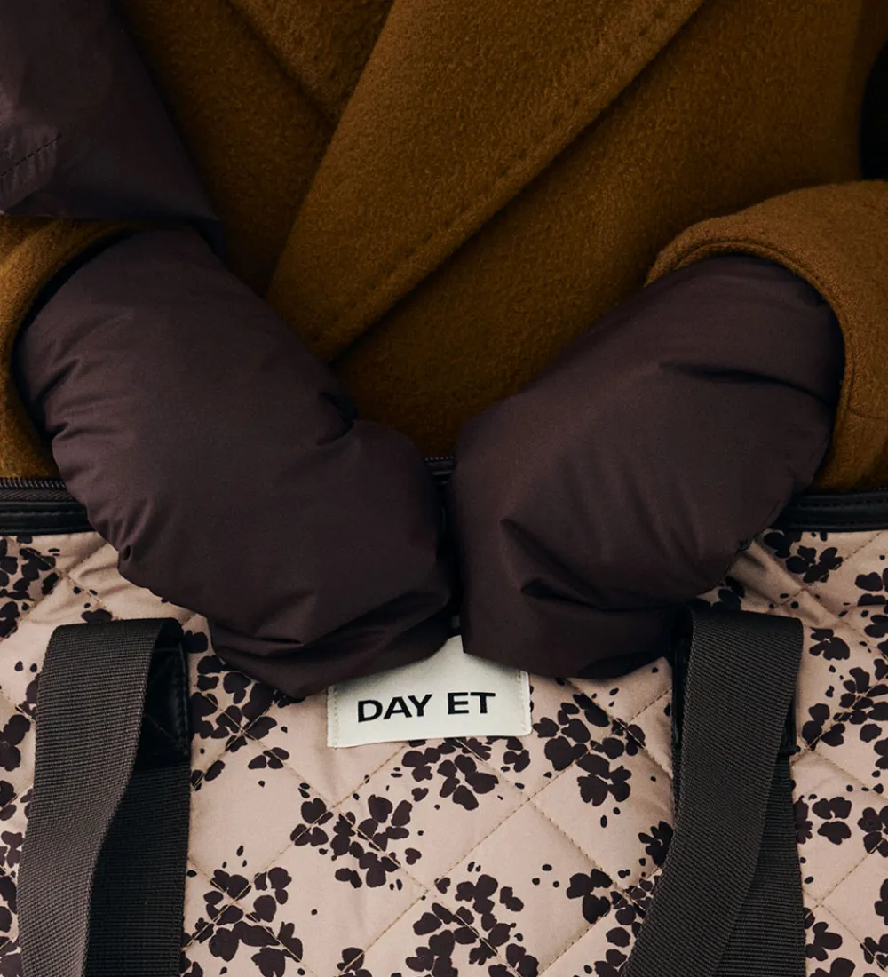 Lækre DAY ET luffer i ensfarvet brun og med sorte ribkanter.