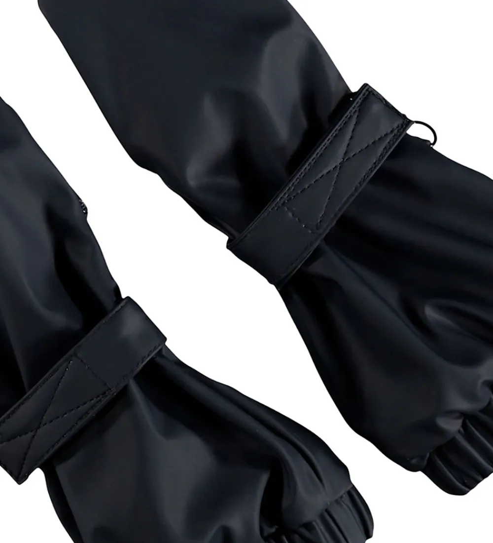 Omkring håndleddene kan de strammes ind med en velcrorem. Name It regnlufferne har en let fleeceforing.