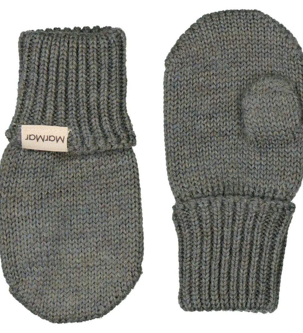 Flotte MarMar luffer strikket i en meleret, grøngrå nuance. MarMar lufferne har en praktisk ribkant, der sikrer god pasform. Perfekte til at holde de små hænder varme på kolde dage.