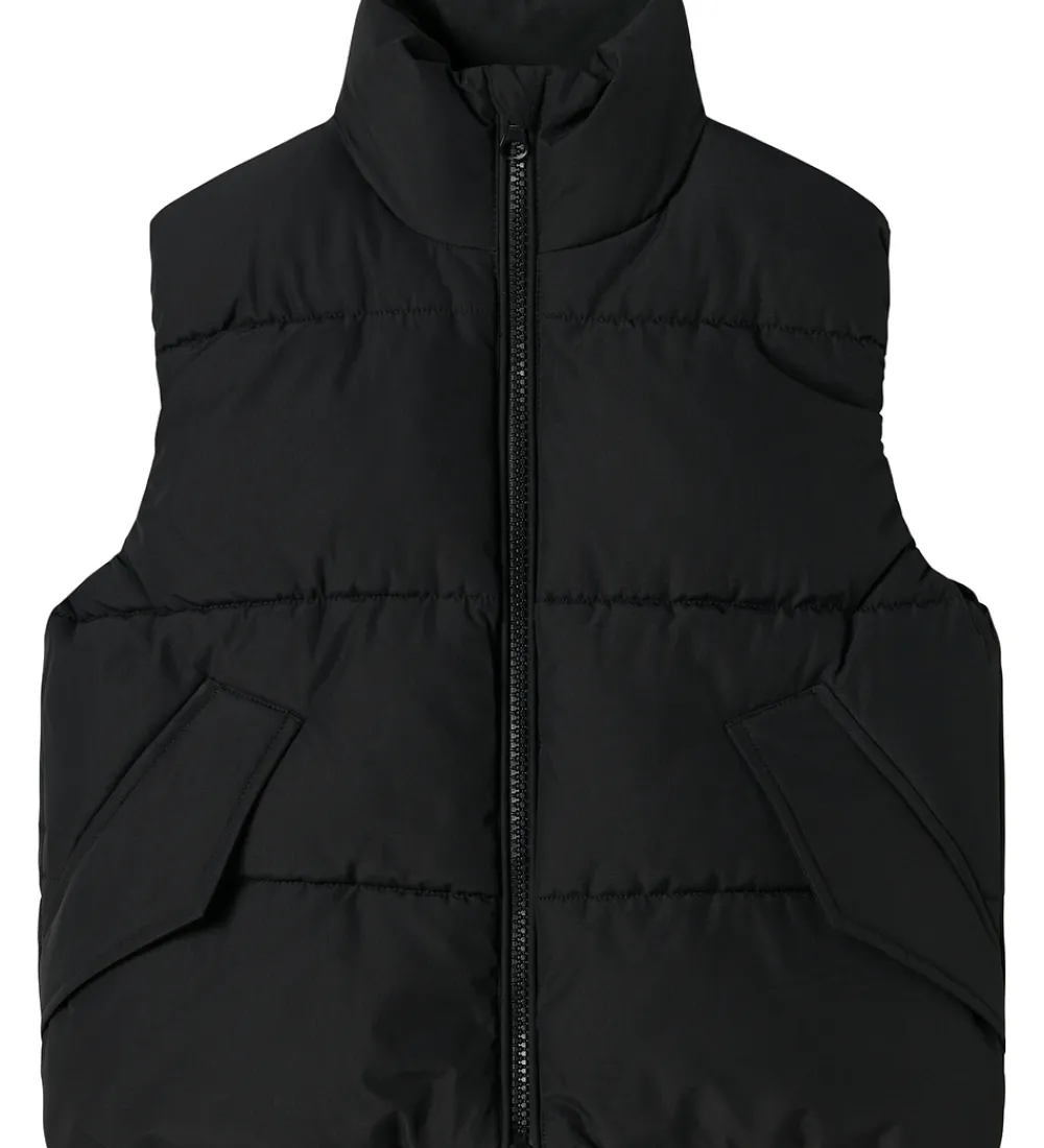 Fin Name It dynevest i ensfarvet sort og med vandrette syninger.