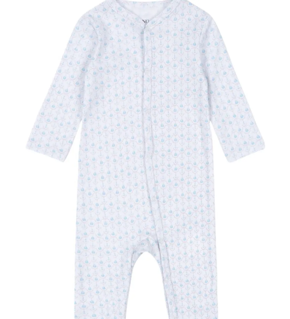 Fin natdragt fra Fanga Fontana i hvid med et delikat mønster af små, blå sejlbåde og røde prikker.