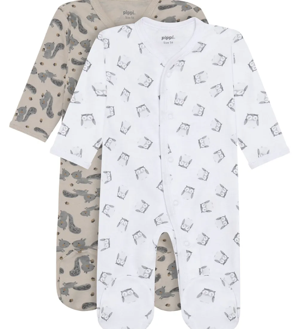 Smatye Pippi Baby natdragter solgt i en 2-pak i følgende designs:
