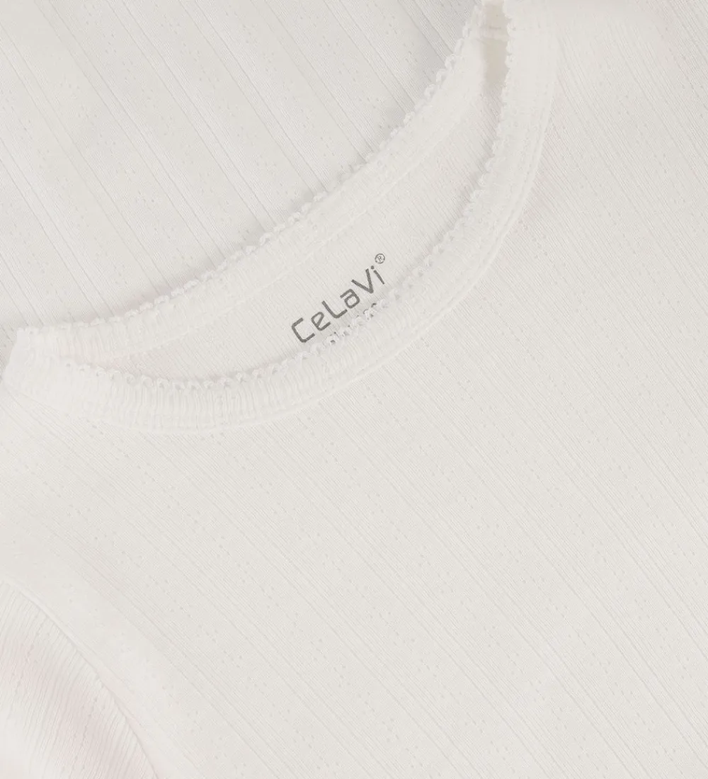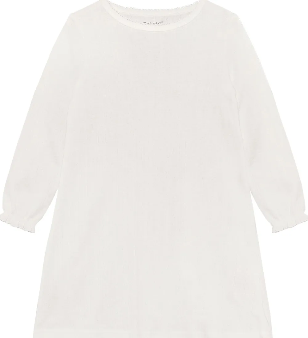 Elegant CeLaVi natkjole hvid med fint hulmønster. Natkjolen har en rund halsudskæring med en flot kant og lange ærmer med flæseafslutning.