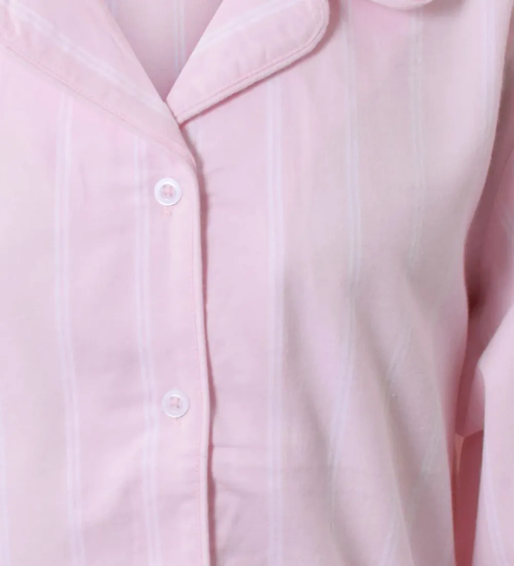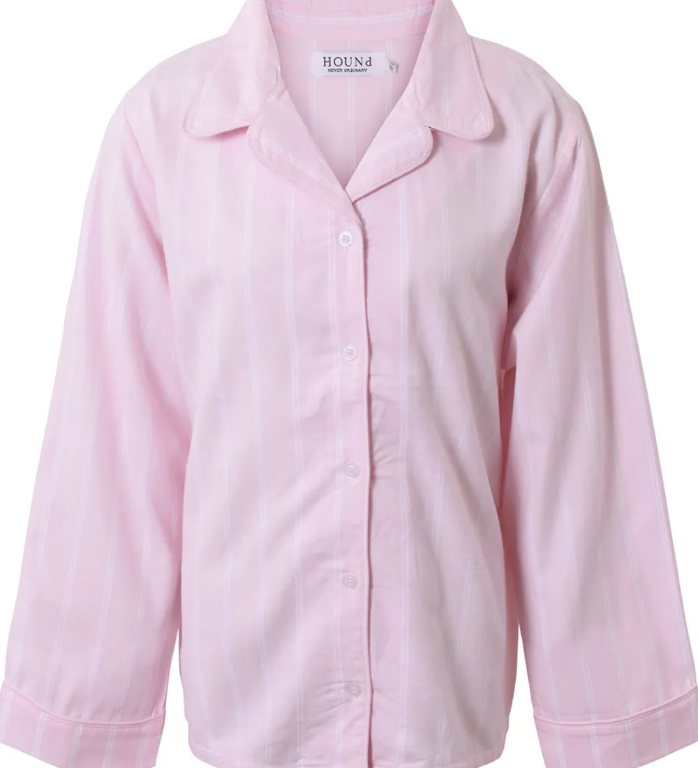 Fin Hound natskjorte i rosa med lodrette, hvide striber. Natskjorten er lavet i en fastvævet kvalitet.