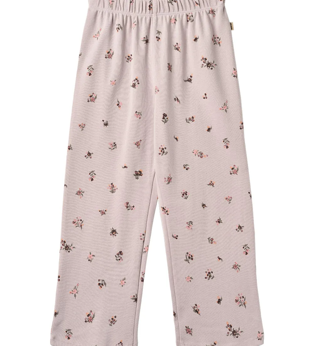 Behageligt Wheat nattøj, som inkluderer en natbluse og et par natbukser, der begge er i lilla og med et fint alloverblomsterprint i rosa og grøn, der giver et stilfuldt look.