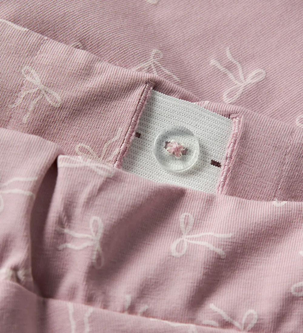Fint Name It nattøj bestående af en natbluse og et par natbukser. Natblusen er hvid og har et print på fronten med teksten “dream” i rosa glimmer. Den har en rund halsudskæring med en smal ribkant og lange ærmer. Natbukserne er rosa og har et alloverprint af sløjfer i en lysere nuance. De har en god elastik i taljen, og i benåbningerne er der fine flæsekanter.