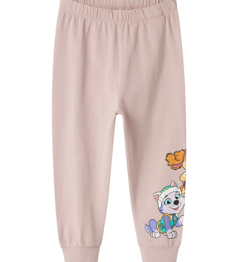 Charmende Name It nattøj bestående af en natbluse og et par natbukser i støvet rosa med print af figurer fra Paw Patrol.