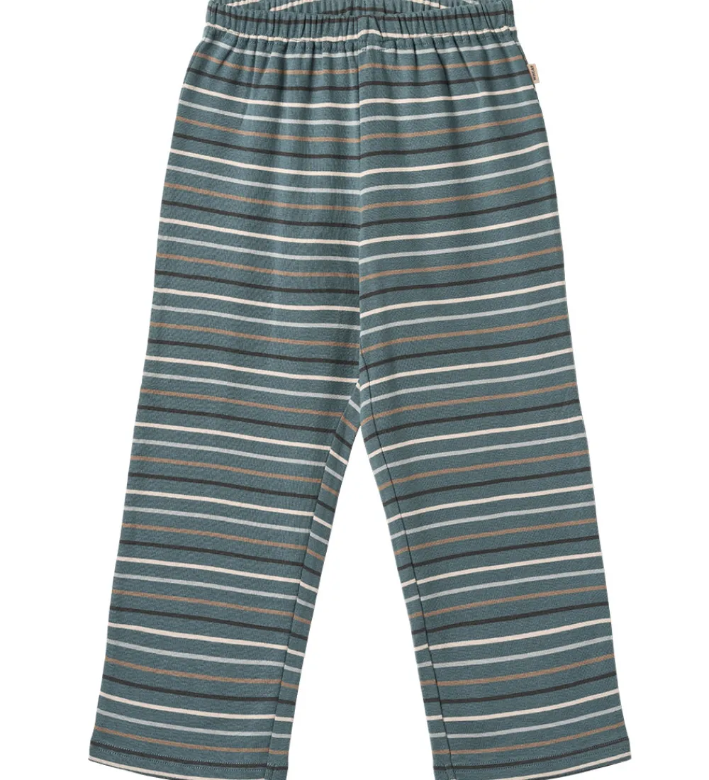 Behageligt Wheat nattøj, der består af en natbluse og et par natbukser. Natblusen er støvet blå, og fortil er der et flot bjergprint. Natbukserne er støvet blå med smalle striber i hvid, brun og blå nuancer.