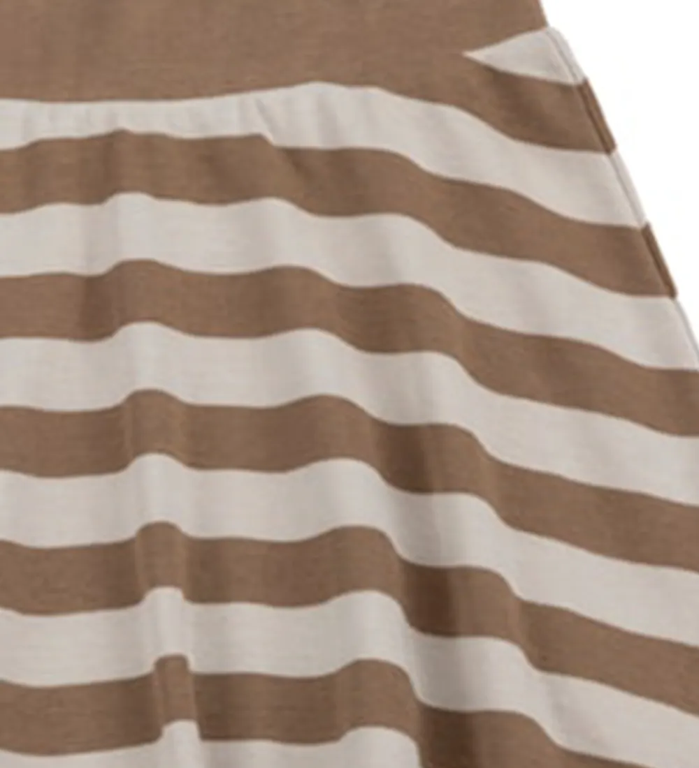 Lækker Katvig nederdel med stribe i brun og beige. Nederdelen har en elastisk talje, der sikrer en god pasform og komfort til enhver aktivitet.