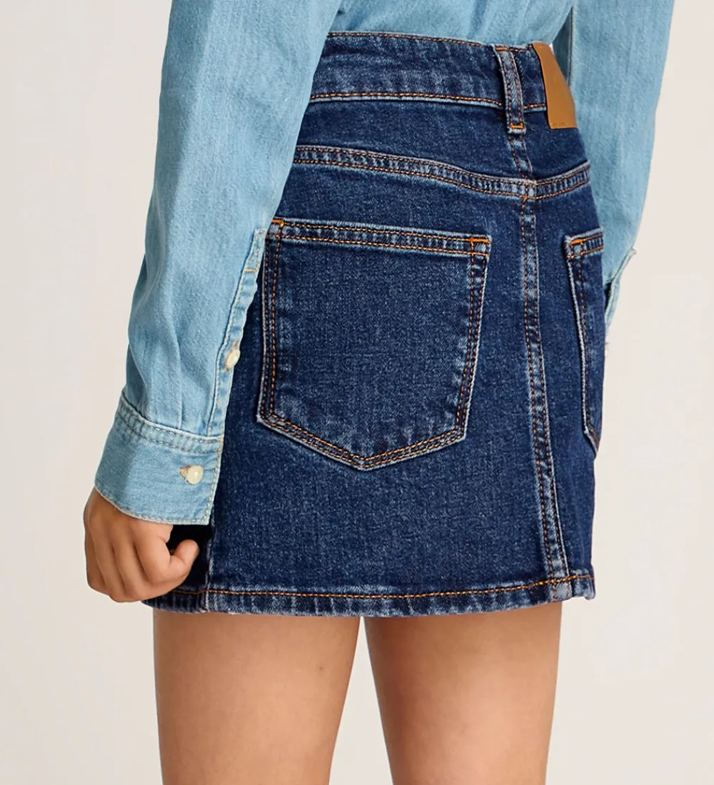 Praktisk Calvin Klein nederdel i en klassisk mørk denimfarve. Nederdelen har en stilren pasform og detaljer som synlige lommer, hvilket giver et moderne udtryk. Calvin Klein nederdelen er ideel til enhver anledning.