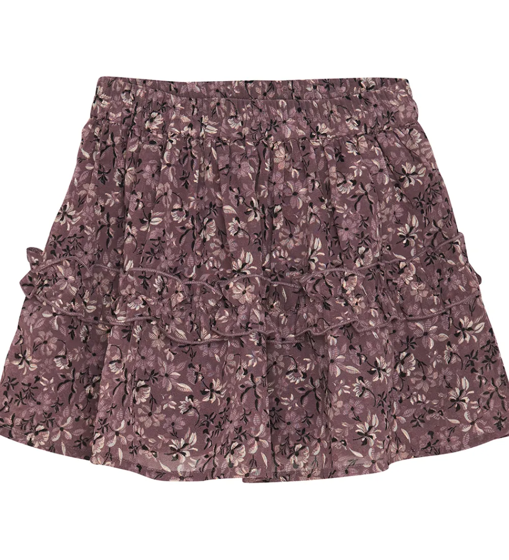 Smuk Creamie nederdel i en flot lilla nuance med et yndigt blomsterprint i lyse farver.