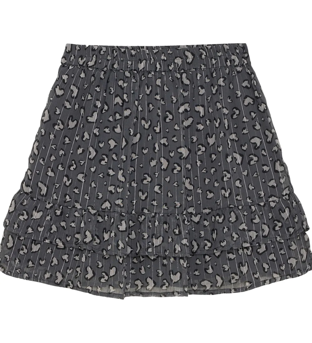 Stilfuld Creamie nederdel med et flot leopardprint i nuancer af grå. Creamie nederdelen har en behagelig elastisk kant i livet, der sikrer en god pasform. Nederdelen er udstyret med fine plisseringer og nederst en dobbelt lag detalje, der tilføjer ekstra elegance. Nederdelen er foret med glatvævet bomuld.