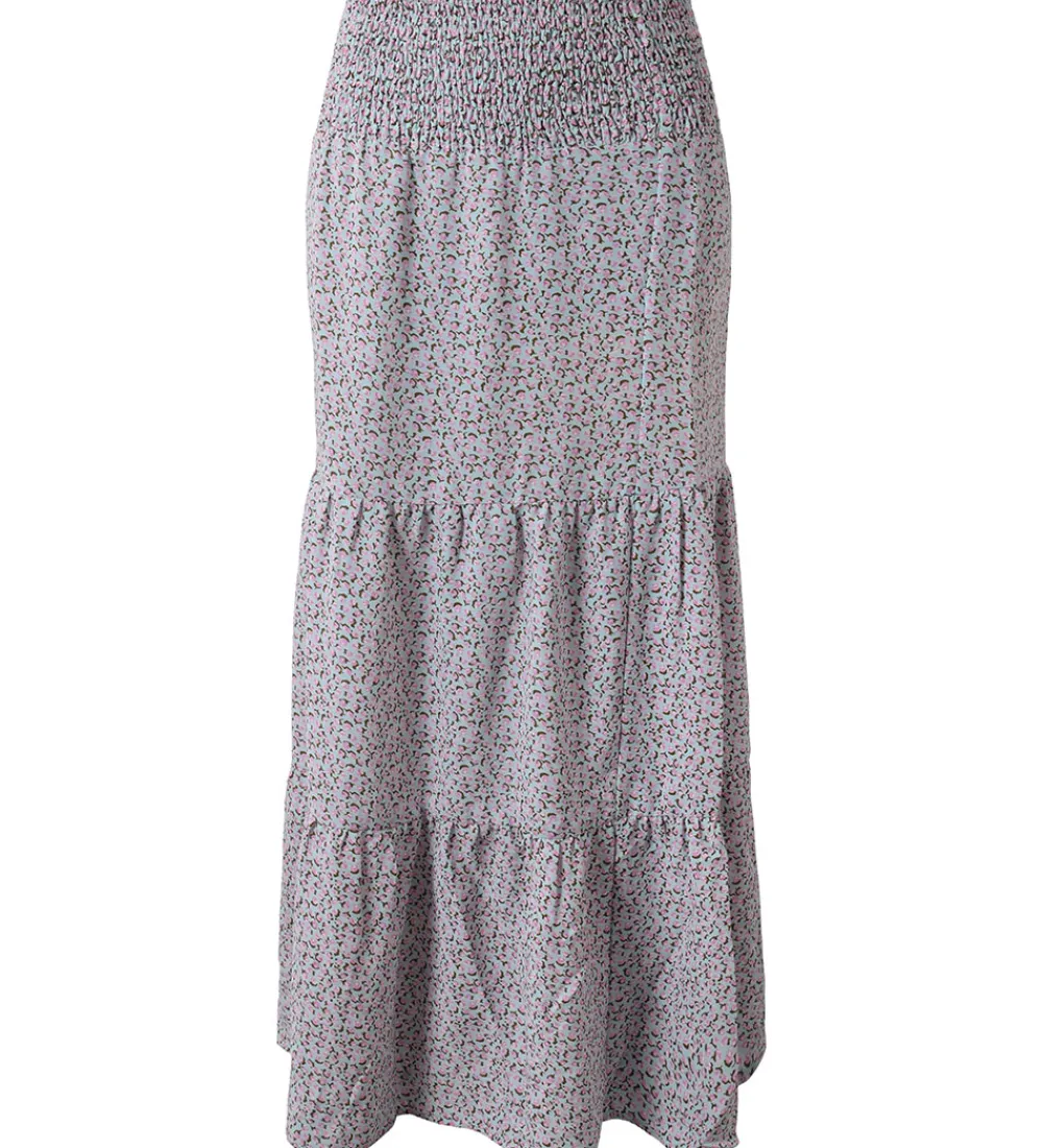 Fin Hound nederdel i lyseblå med et allover blosmterprint i rosa nuancer samt mørkegrøn.