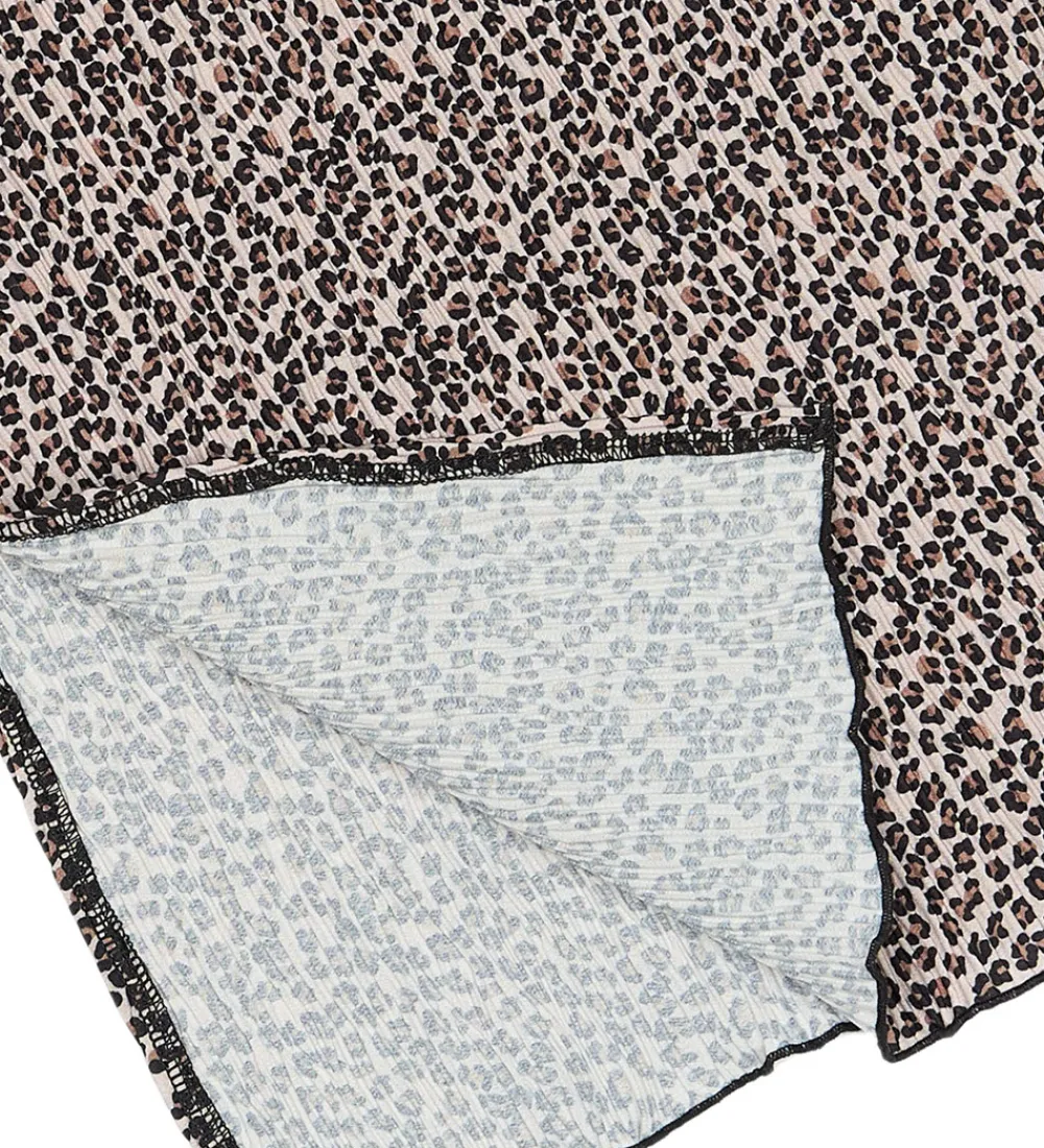 Flot The New nederdel med matchende scrunchie i et allover leopardmønster og i en skøn og strækbar kvalitet med plisseret struktur. Nederdelen fra The New er en lang model med en slids i hver side, så der er plads til bevægelse. Den har en behagelig pasform med en bred, elastisk talje for nem tilpasning og kan justeres yderligere med knapper indvendigt.