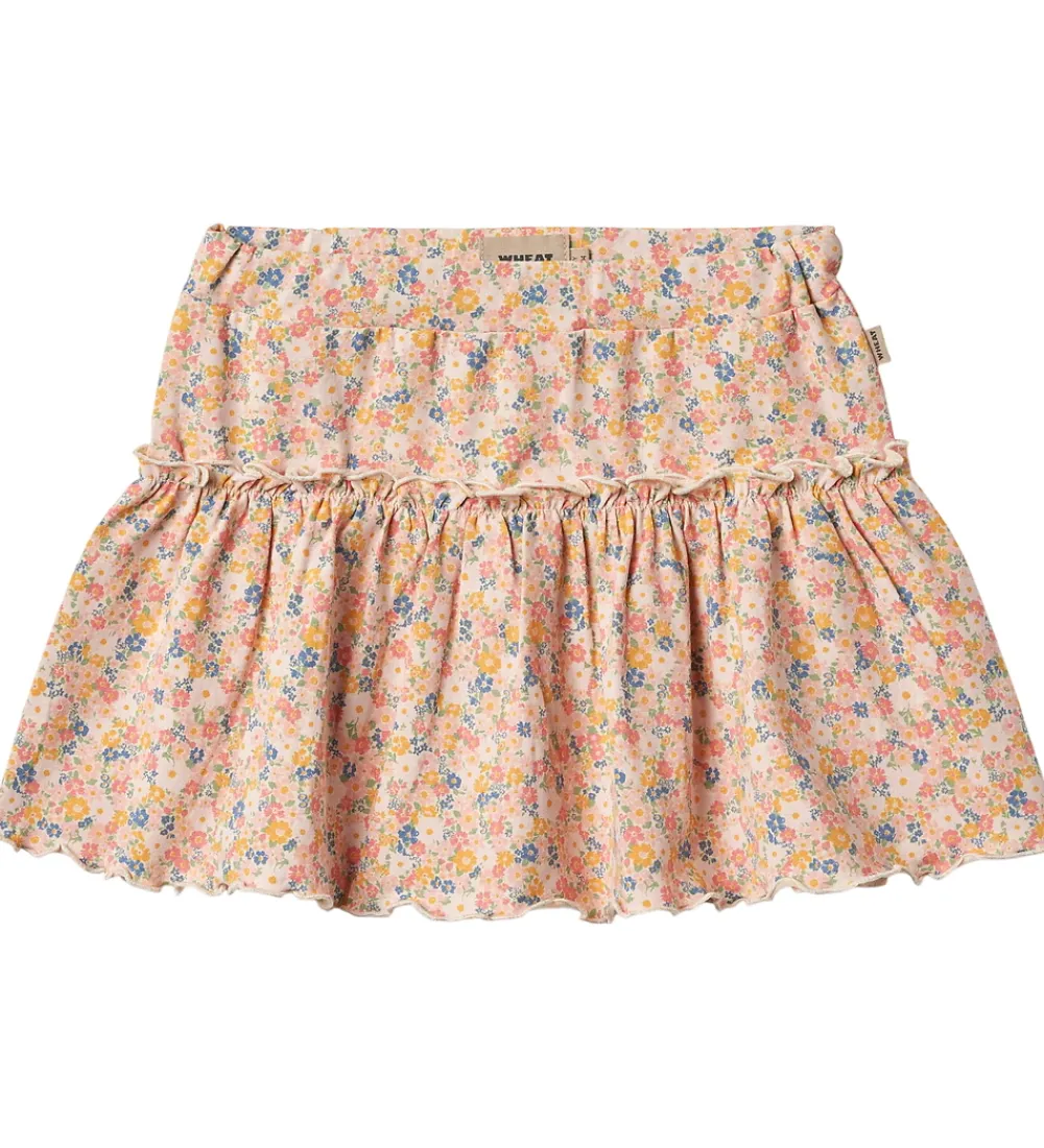 Charmerende Wheat nederdel med et blomsterprint i lyse farver. Wheat nederdelen har en elastisk talje, som giver en god pasform. Nederdelen har en dekorativ flæsekant, der tilføjer ekstra detaljer.