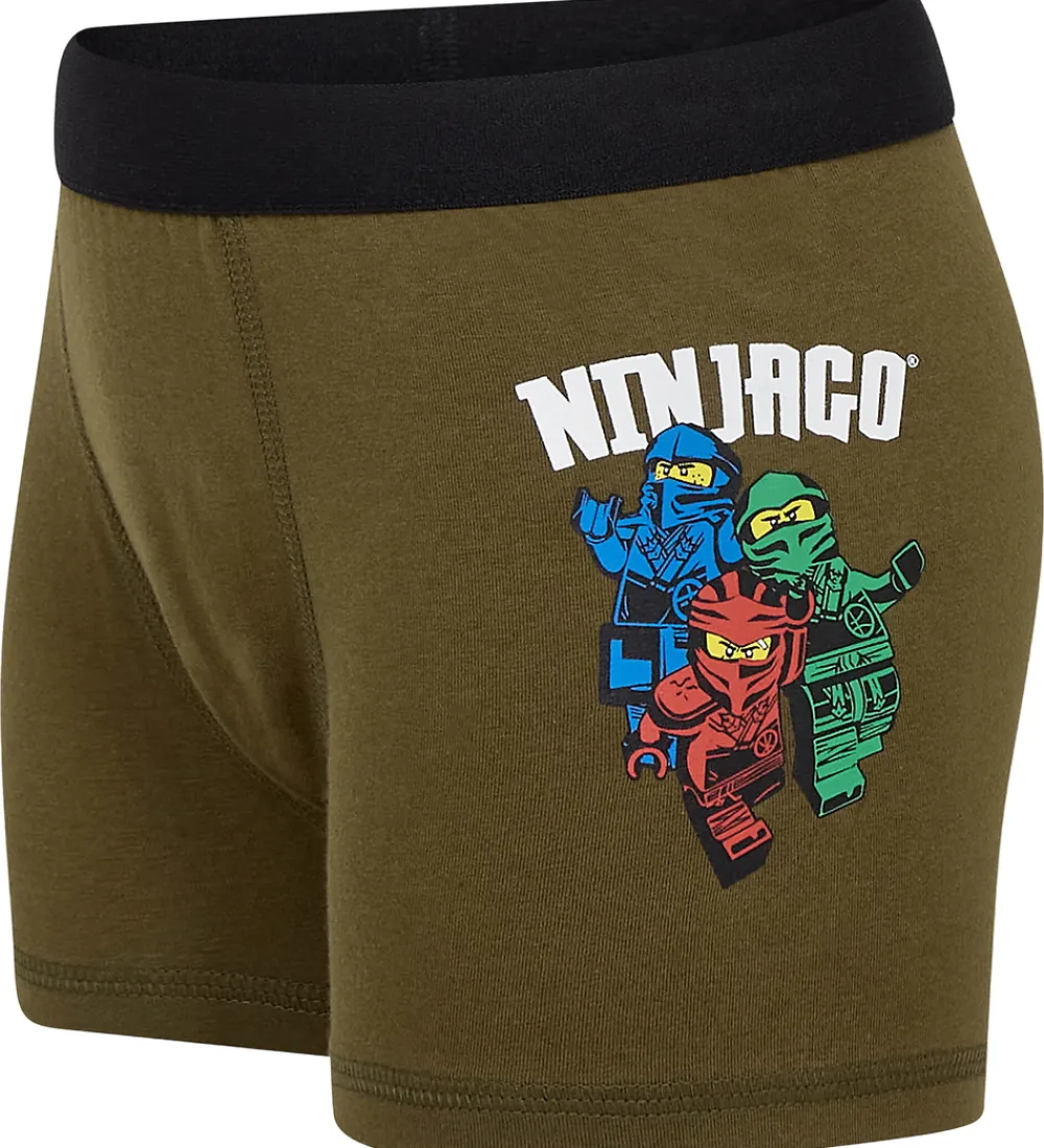 Farverige LEGO® Wear Ninjago boxershorts i en 3-pak med tre forskellige farver, hver med et sejt Ninjago-motiv. Boxershortsene har en sort elastikkant øverst, der sikrer en behagelig pasform.