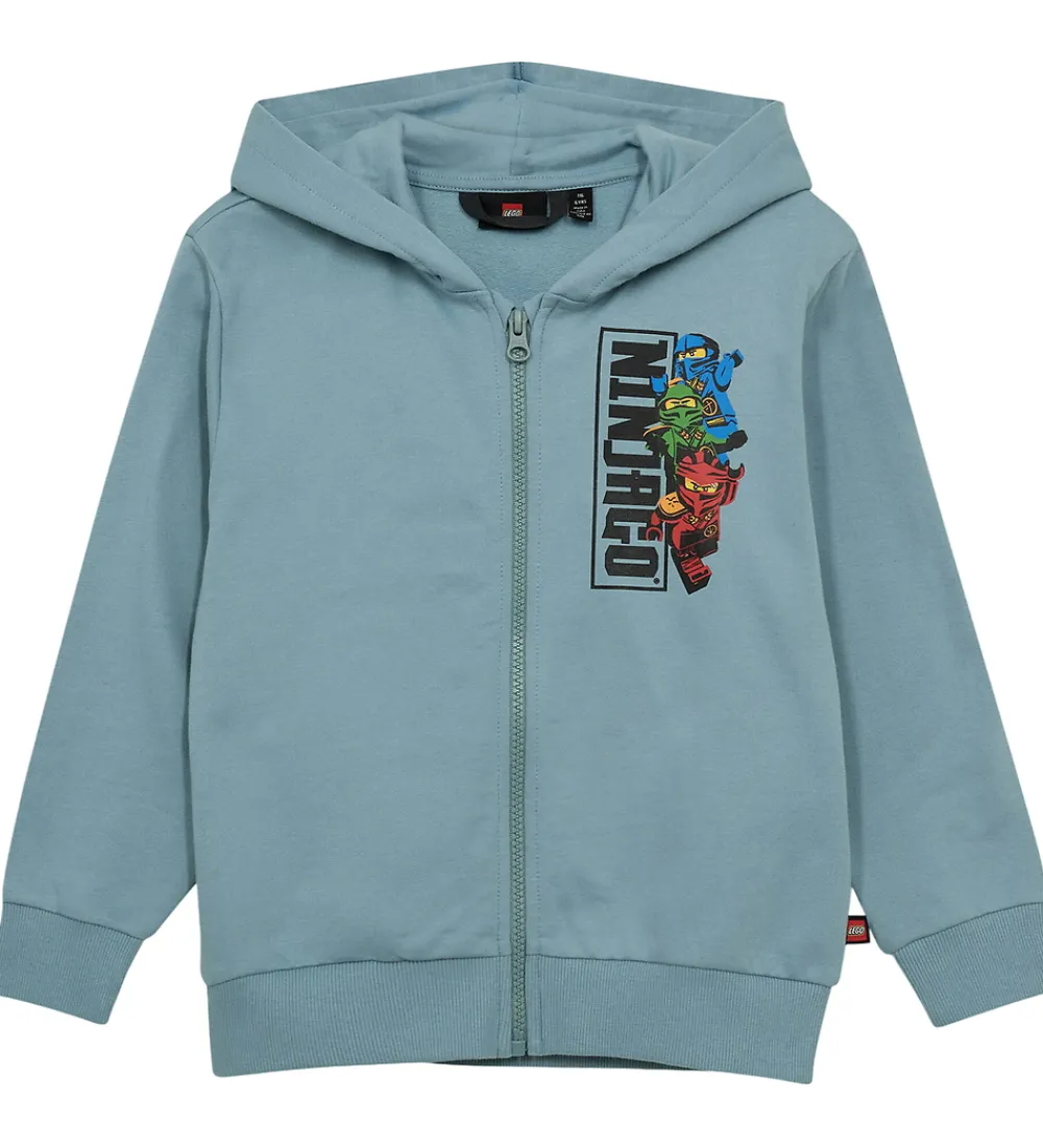 Cool cardigan med hætte fra LEGO® Wear Ninjago i blågrøn og med et sejt print fortil med de ikoniske LEGO® Ninjago-figurer. Cardiganen er med blød, børstet bomuld indvendigt.