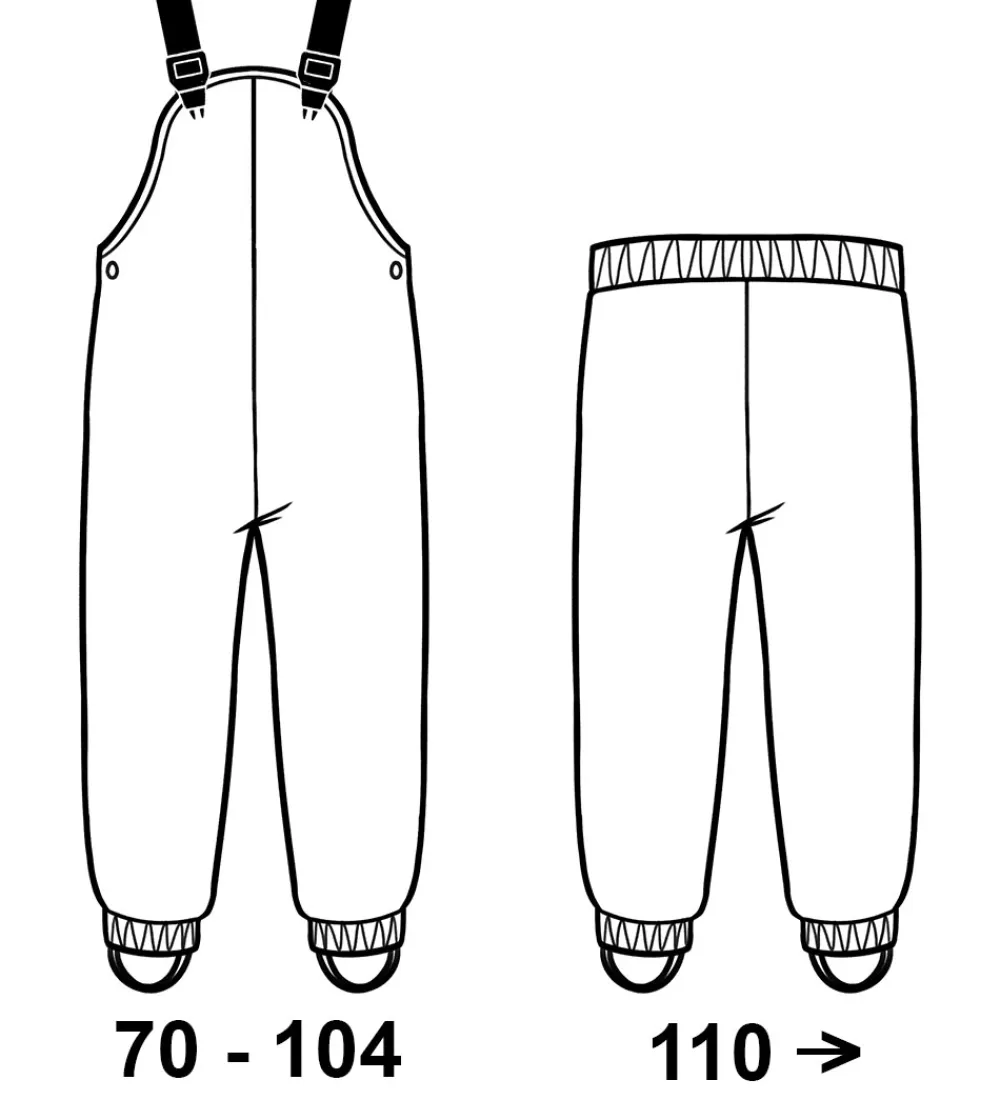 CeLaVi regnbukserne har sorte, justerbare elastikseler, som kan åbnes fortil med klikspænder. Bukserne kan strammes ind i siderne med en trykknap. Regnbukserne har elastikkanter omkring benåbningerne og justerbare, aftagelige elastikstropper til at sætte under gummistøvlerne.