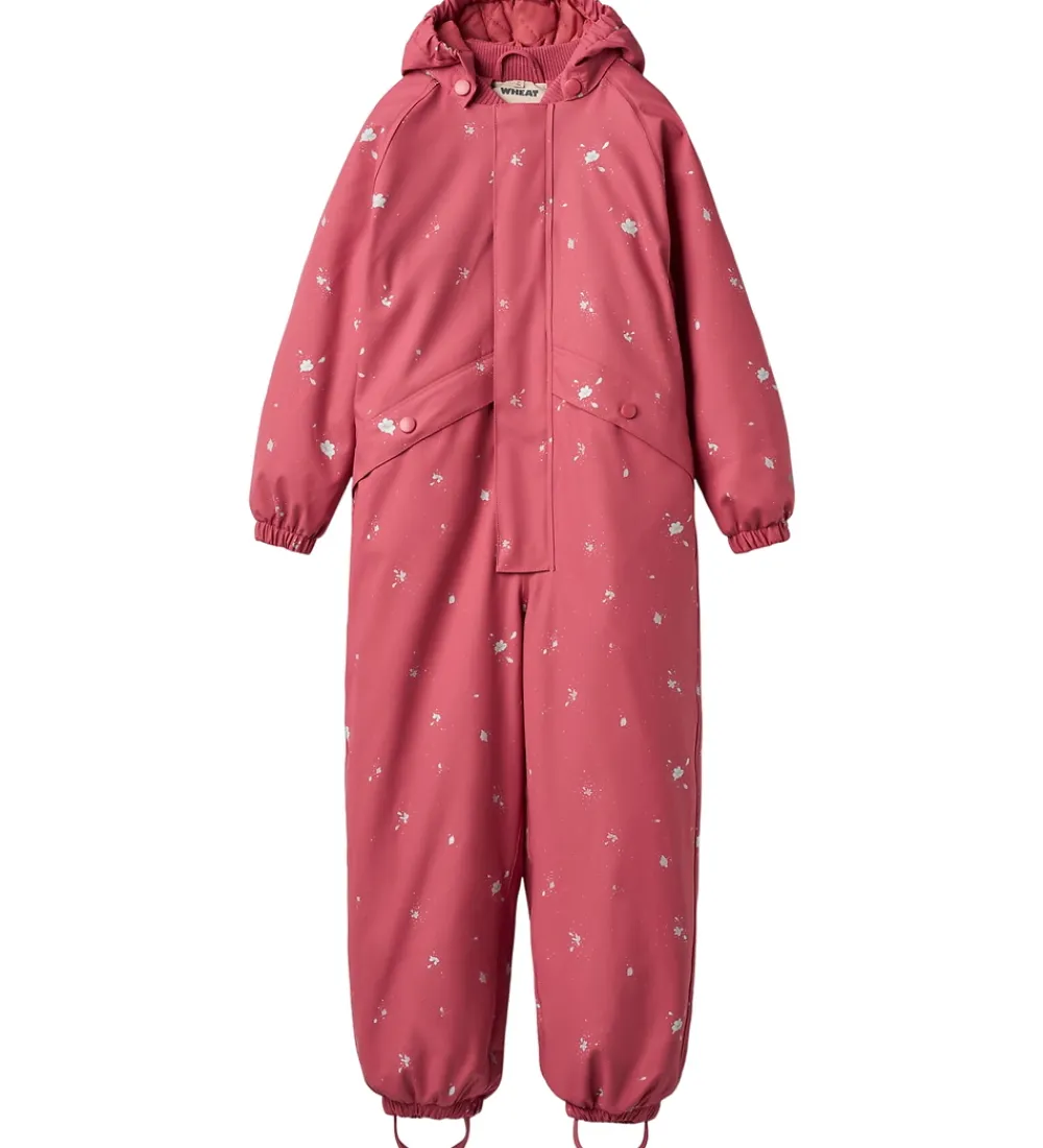 Skøn Wheat regndragt af PU i rød med et lys print af små blomster.