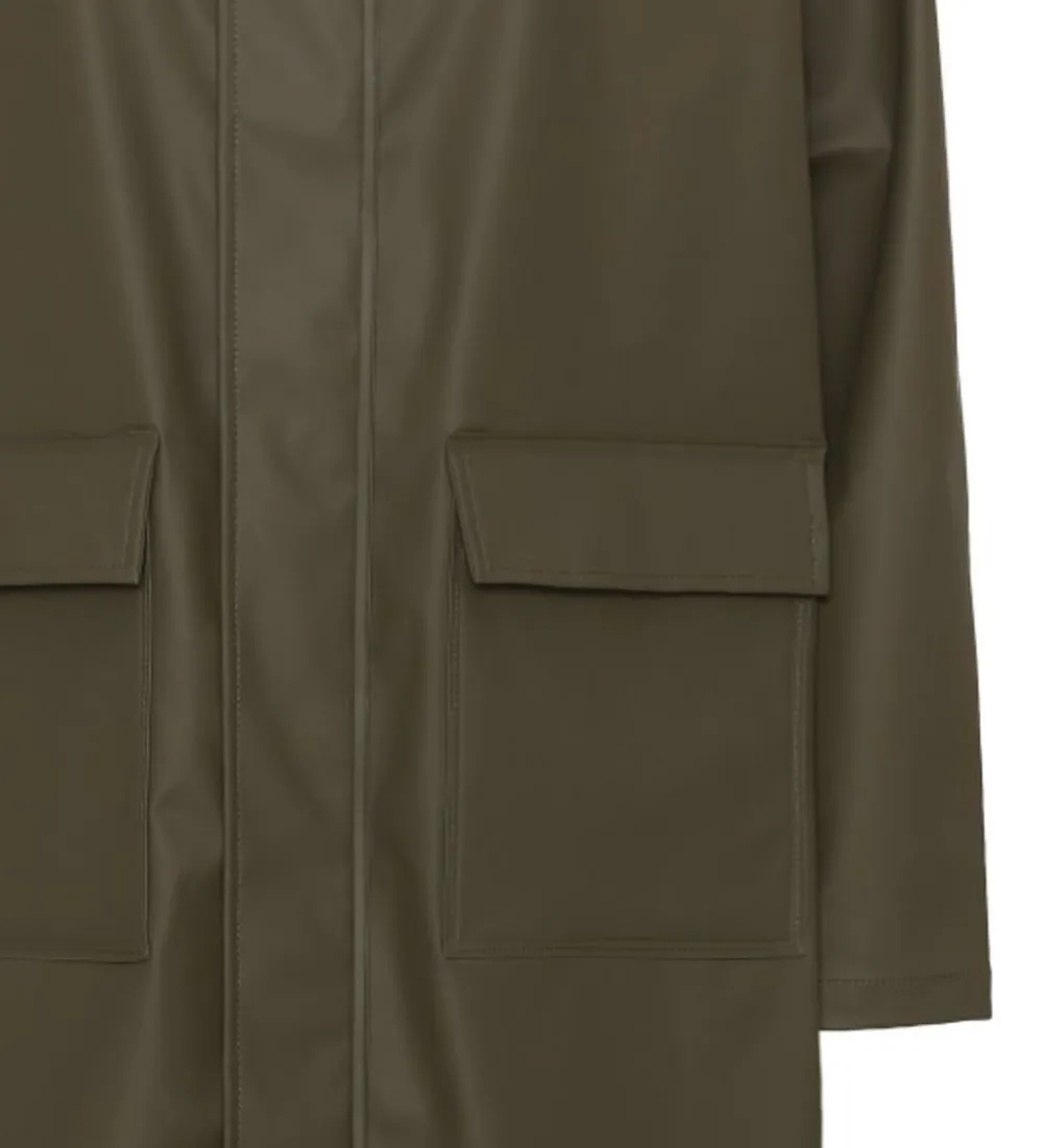 Flot Ver de Terre regnfrakke i ensfarvet armygrøn.