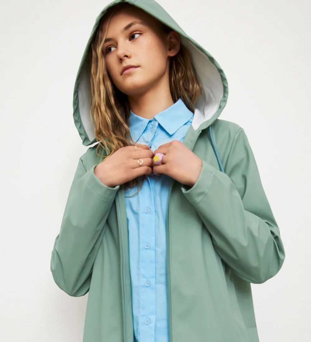 Smart Hound regnfrakke i ensfarvet støvet grøn PU.