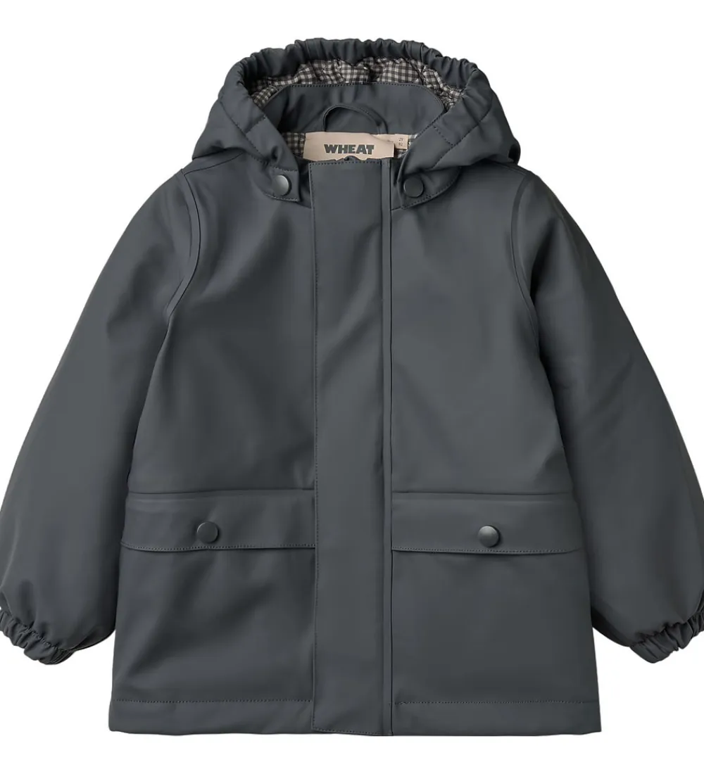 Pæn Wheat regnjakke af PU i ensfarvet, mørk gråblå.