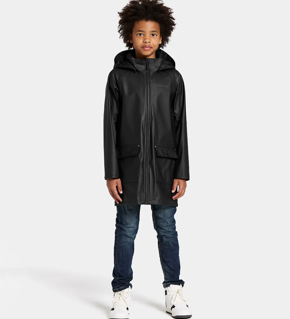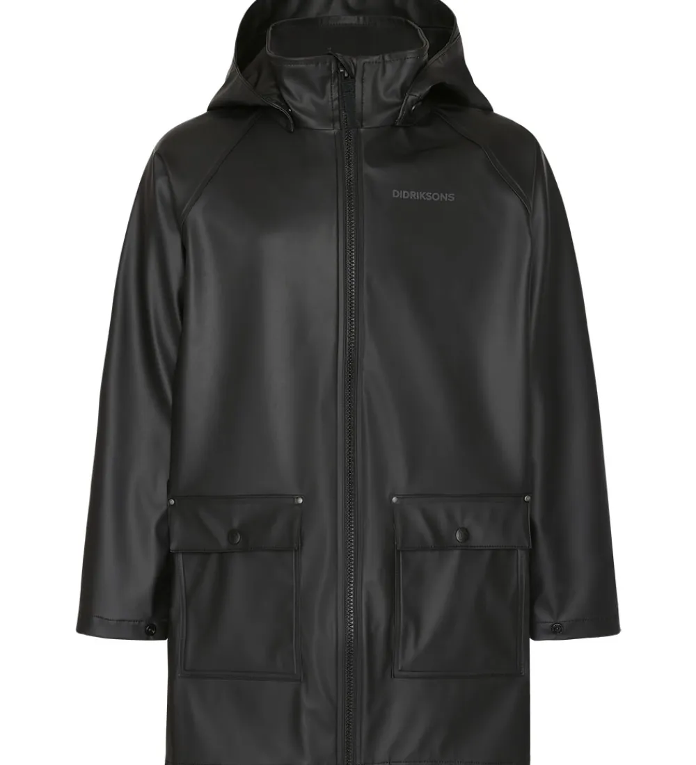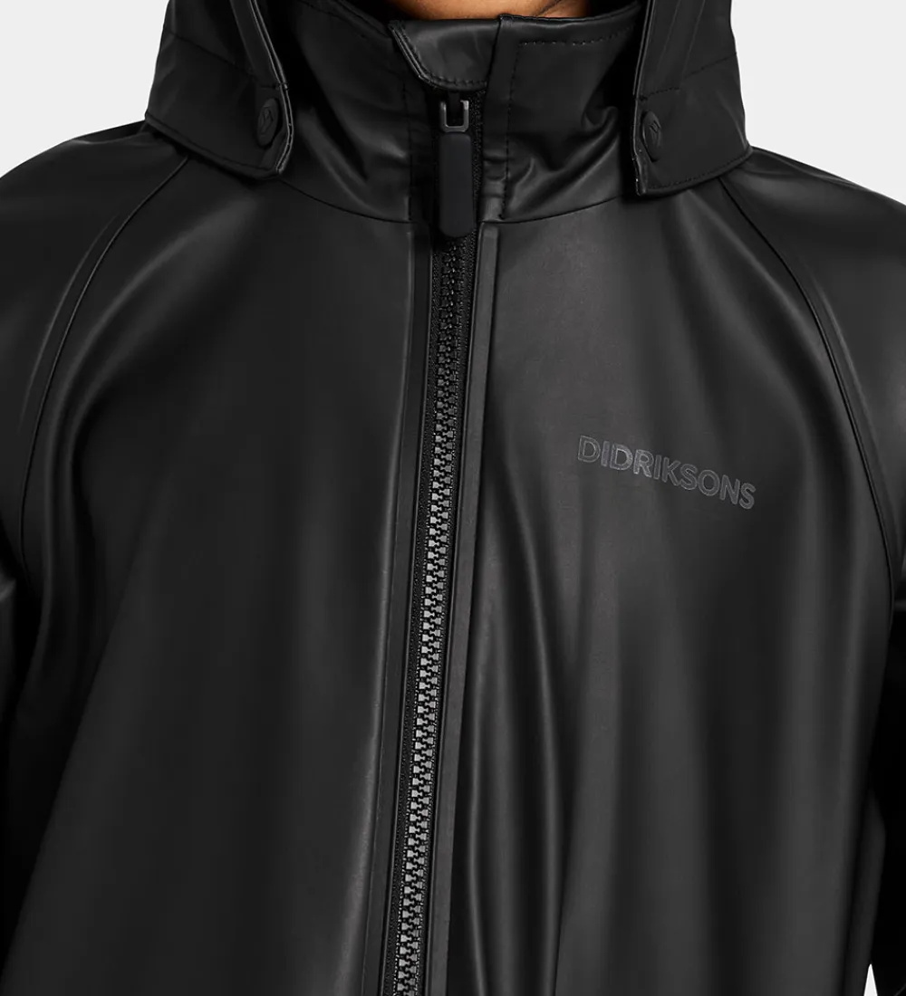Lækker Didriksons regnjakke i ensfarvet sort Galon® med reflekslogoprints.
