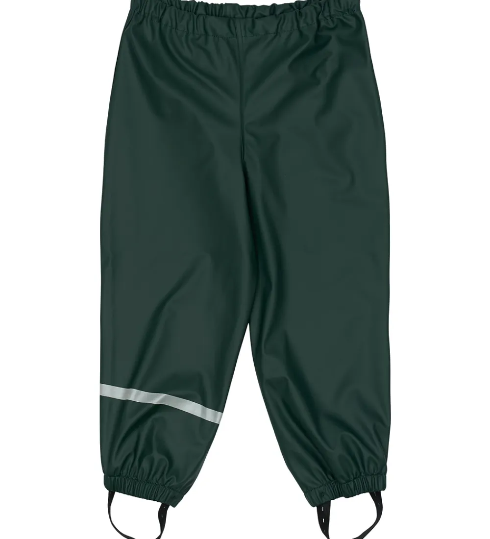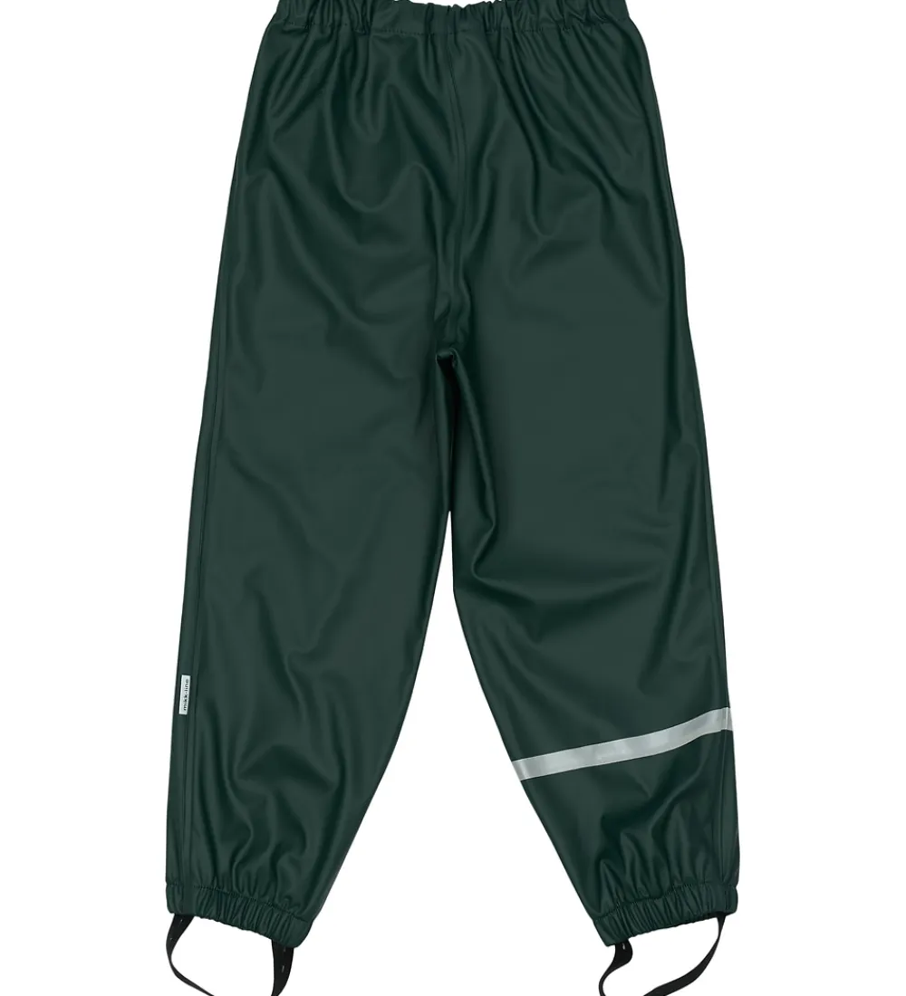 Regnbukserne har elastikkanter i både taljen og buksebenene, samt har de justerbare, aftagelige elastikstropper, som kan sættes under gummistøvlerne.