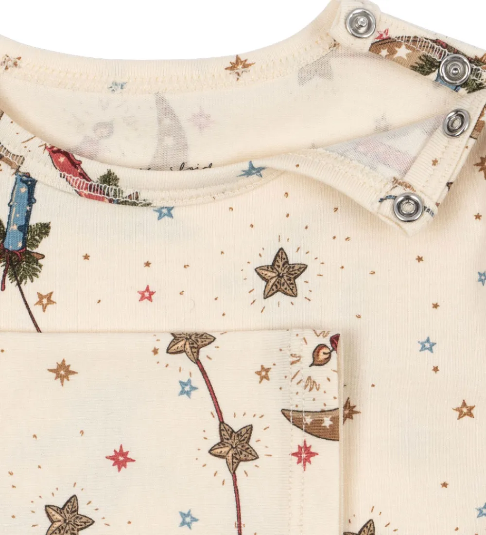 Charmerende Konges Sløjd sæt bestående af en body og et par leggings i beige med et farverigt eventyrligt måne- og stjernemønster.