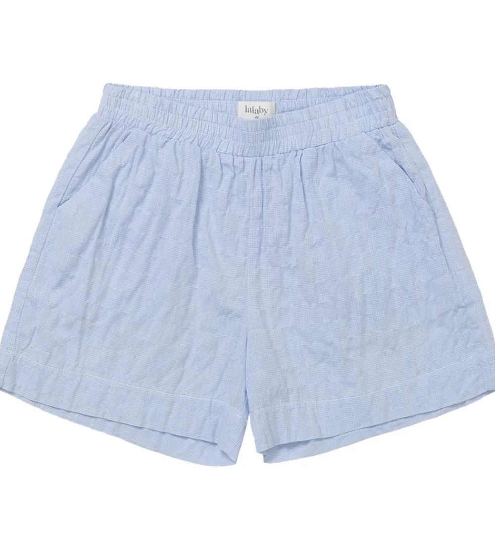 Elegante Lalaby shorts i en lyseblå nuance med en diskret ternet mønster.