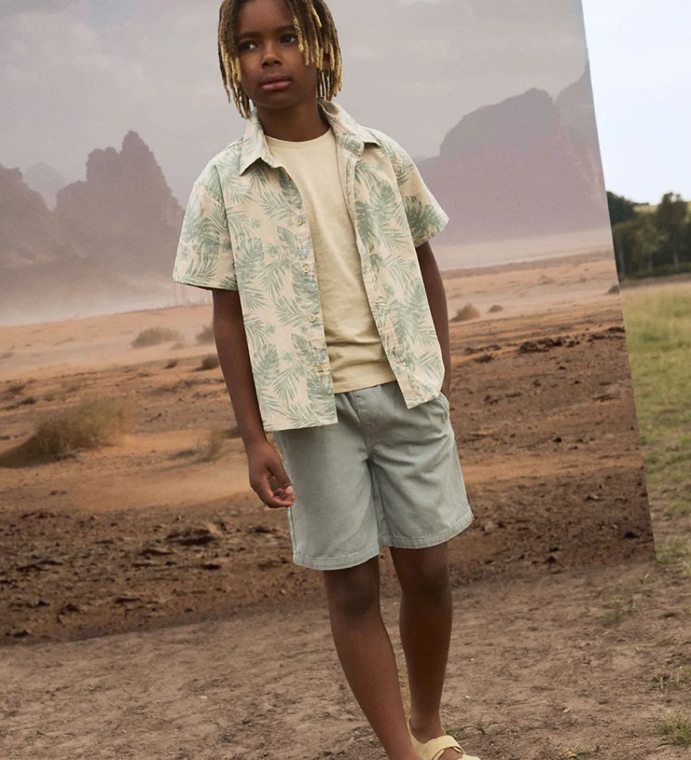 Komfortable Name It shorts i en flot, støvet, grøn nuance med denim struktur. De har elastik i taljen med bindebånd og praktiske sidelommer. Name It shortsene er både funktionelle og stilfulde til sommerdagene.